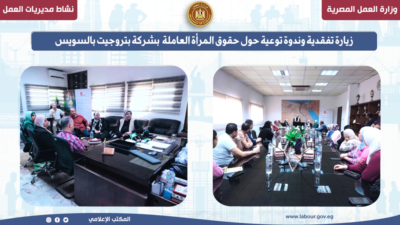 زيارة تفقدية وندوة توعية حول حقوق المرأة العاملة بشركة بتروجيت بالسويس