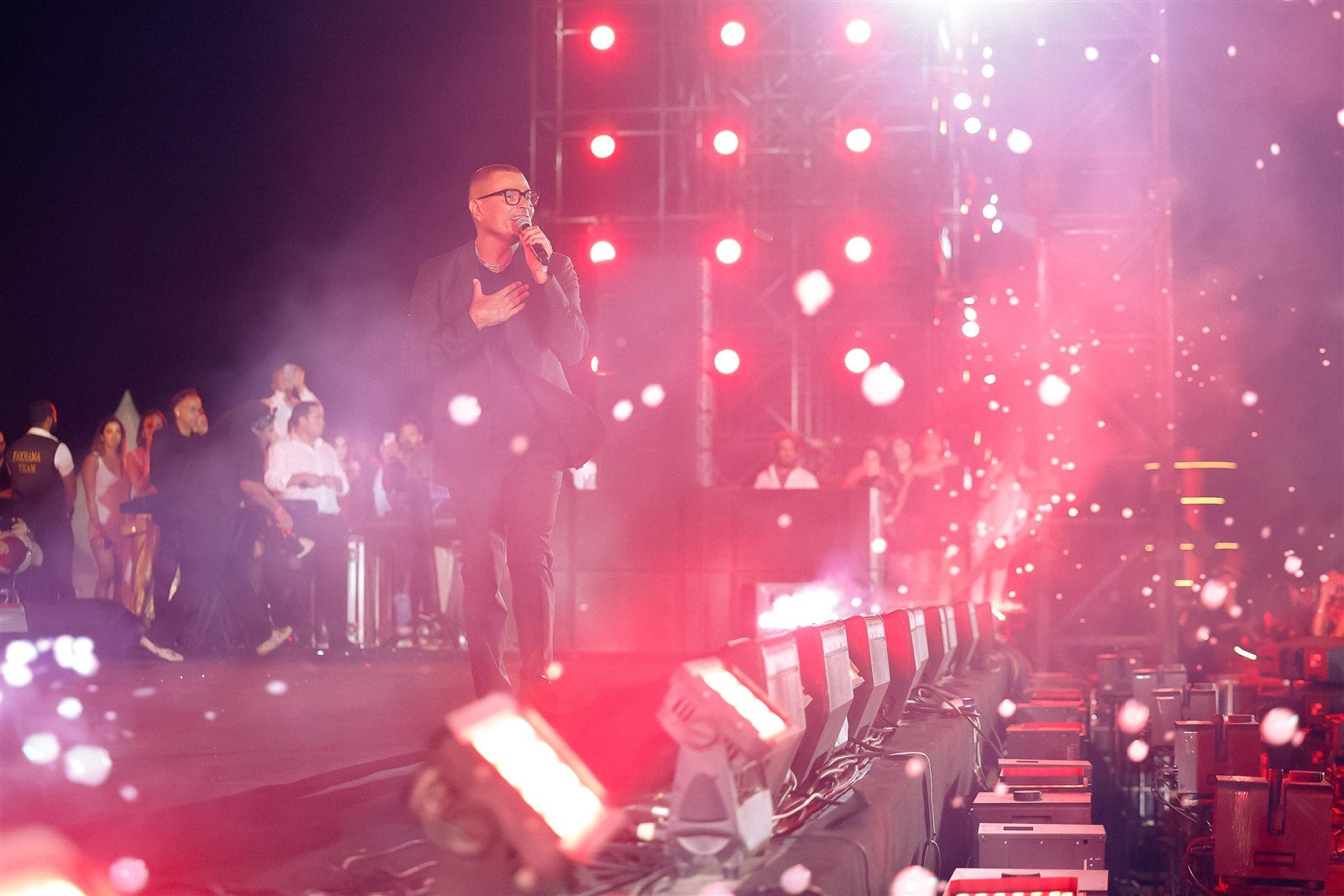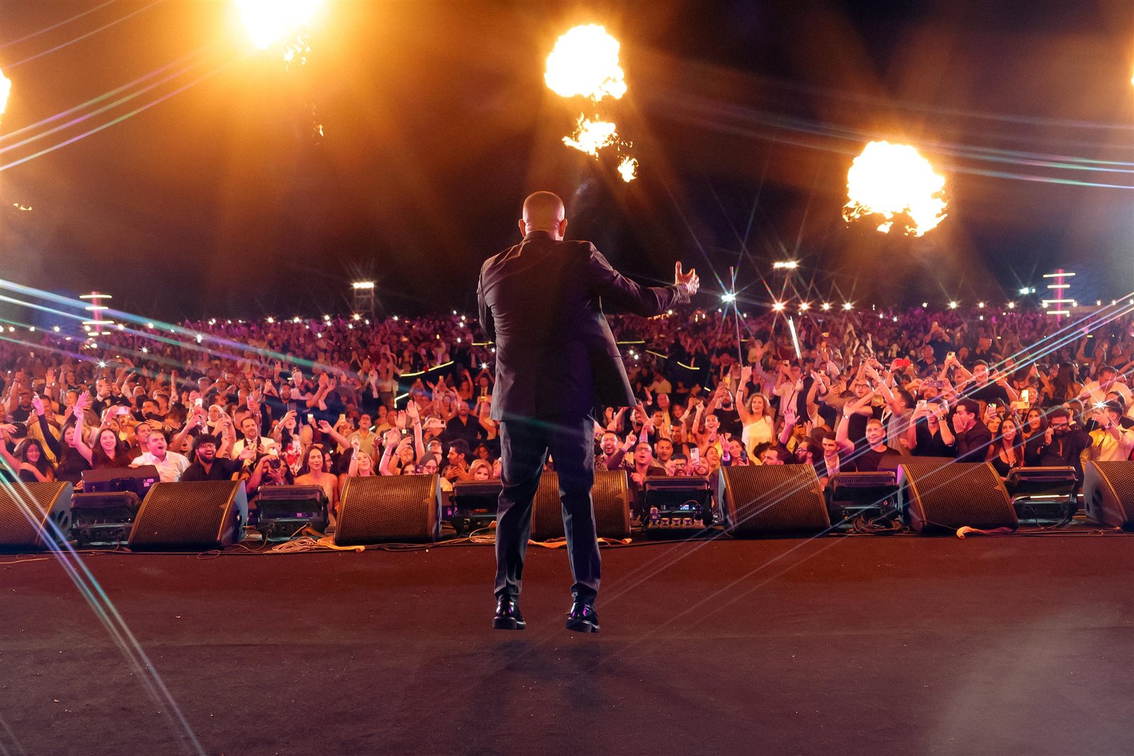وصعد الهضبة إلى المسرح على أنغام أغنيته يا أنا يا لأ وسط تفاعل كبير من الحضور ، وقدم لهم التحية مبديا سعادته بمشاركتهم هذا الحفل للعام الثالث على التوالي.