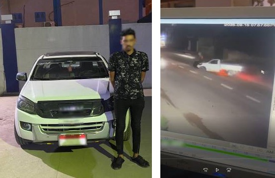 وبالفحص تبين عدم ورود ثمة بلاغات في هذا الشأن ، أمكن تحديد السيدة الظاهرة بمقطع الفيديو (ربة منزل "مصابة بكسر بالساقين"– مقيمة بدائرة المركز) ، وأمكن تحديد وضبط السيارة الظاهرة بمقطع الفيديو "سارية التراخيص" وقائدها (عامل "لا يحمل رخصة قيادة" – مقيم بدائرة مركز شرطة صان الحجر) .