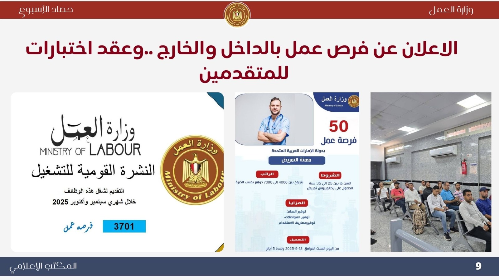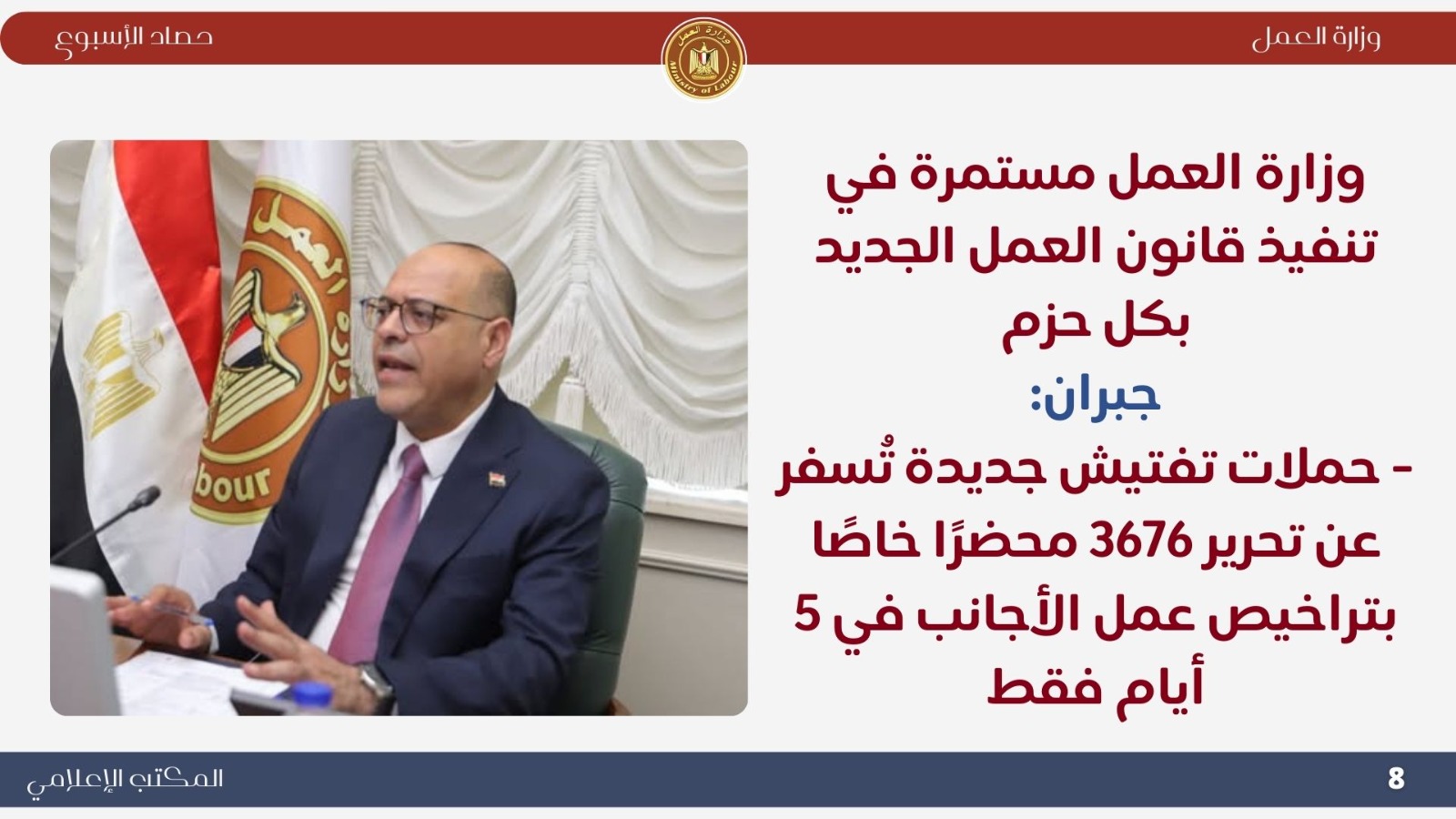 تعرف على الحصاد الأسبوعي لوزارة العمل