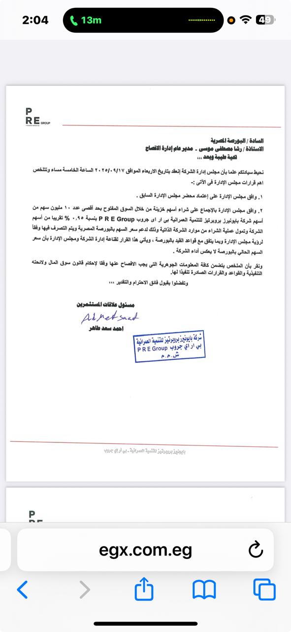 وليد زكي يقود “بايونيرز بروبرتيز للتنمية العمرانية” لدعم سهم الشركة بالبورصة عبر شراء أسهم خزينة