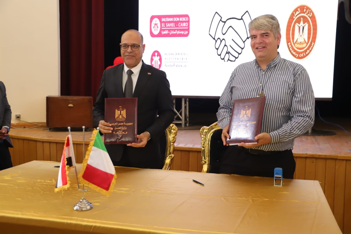 قام وزير العمل السيد محمد جبران،اليوم السبت، بالتوقيع على عقدي اتفاق مع معهد الساليزيان الإيطالي بفرعيه بالقاهرة والإسكندرية، للتعاون لأول مرة في دراسة احتياجات سوق العمل المحلي والدولي، وإعداد دورات تدريبية يحصل من يجتازها على شهادات من "الوزارة" و"المعهد" معتمدة دوليا ومحليا.