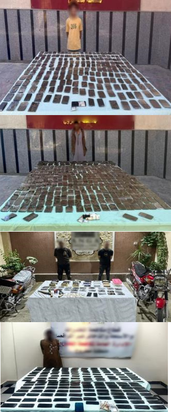 كما أسفرت جهود أجهزة وزارة الداخلية عن ضبط باقى عناصر تلك البؤر ، وبحوزتهم (أكثر من نصف طن من المواد المخدرة المتنوعة "حشيش ، آيس ، هيدرو" – 68 ألف قرص مخدر – 87 قطعة سلاح نارى "80 بندقية خرطوش 4 بنادق آلية ، 3 فرد خرطوش).