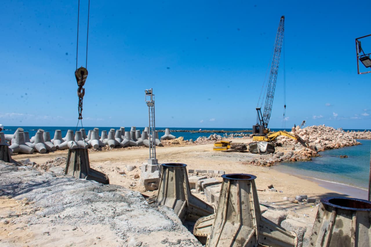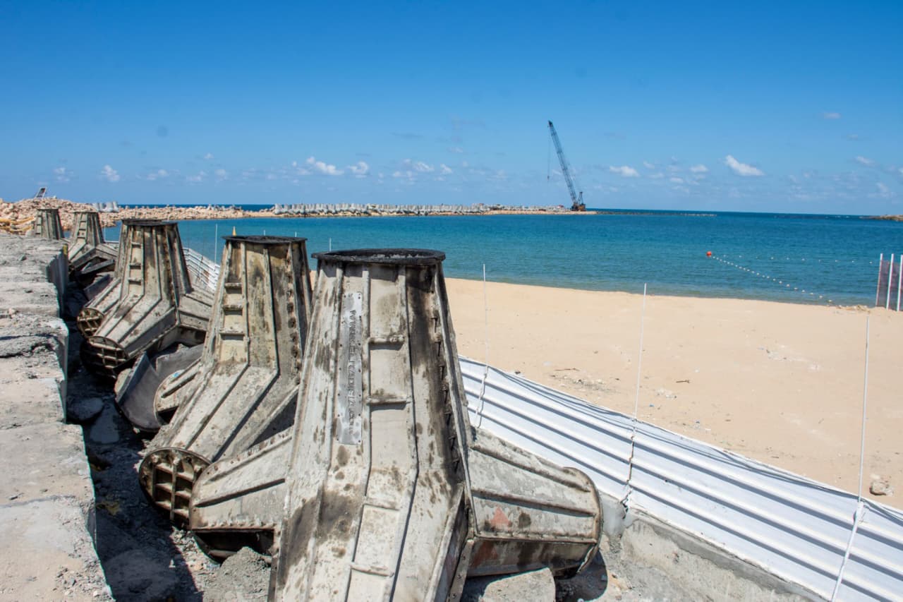 جدير بالذكر أن عملية حماية ساحل مدينة الإسكندرية تمتد بطول ٢.٠٠ كيلو متر، ويتم تنفيذ أعمال تدعيم الحواجز الغاطسة في الإتجاه الغربى بطول ١١٠٠ متر وفى الإتجاه الشرقى بطول ٥٠٠ متر، وتتكون أعمال التدعيم من كتل تترابود بأوزان من ٧ – ٢٢ طن لطبقة الحماية الرئيسية، وأحجار متدرجة من ١ – ٣ طن للقدمات، وأحجار متدرجة من ٥٠ - ١٠٠ كجم للفرشة، مع زيادة عرض أعلى الحواجز الغاطسة من ٤٠ متر إلى ٦٠ متر .