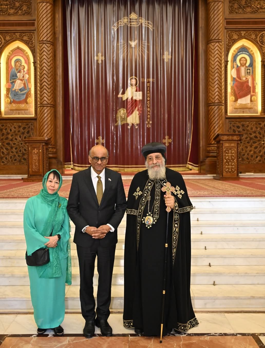 ومن جهته عبر رئيس سنغافورة عن سعادته بلقاء قداسة البابا وزبارة الكنيسة القبطية، مشيدًا بالروابط القوية التي تربط بين قداسته وفضيلة الإمام الأكبر لافتًا إلى أن التناغم بينهما له تأثيره الإيجابي في مصر بل ويمتد هذا الأثر إلى الخارج أيضًا.