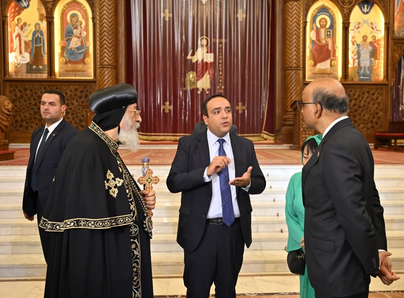 وعقب اللقاء اصطحب قداسة البابا ضيفه لزيارة الكاتدرائية المرقسية بمنطقة الأنبا رويس حيث استمع إلى شرح لتاريخها ومعالمها الأساسية.
