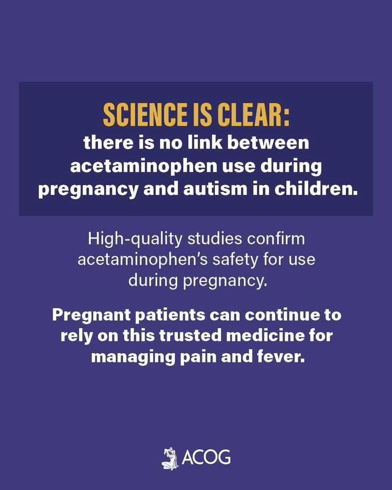 أصدرت بيانا قالت فيه إن الباراسيتامول هو المسكن وخافض الحرارة الأكثر أمانًا للحوامل، ولم تُثبت الدراسات وجود مخاطر جدّية عند استخدامه بالجرعات الموصى بها.