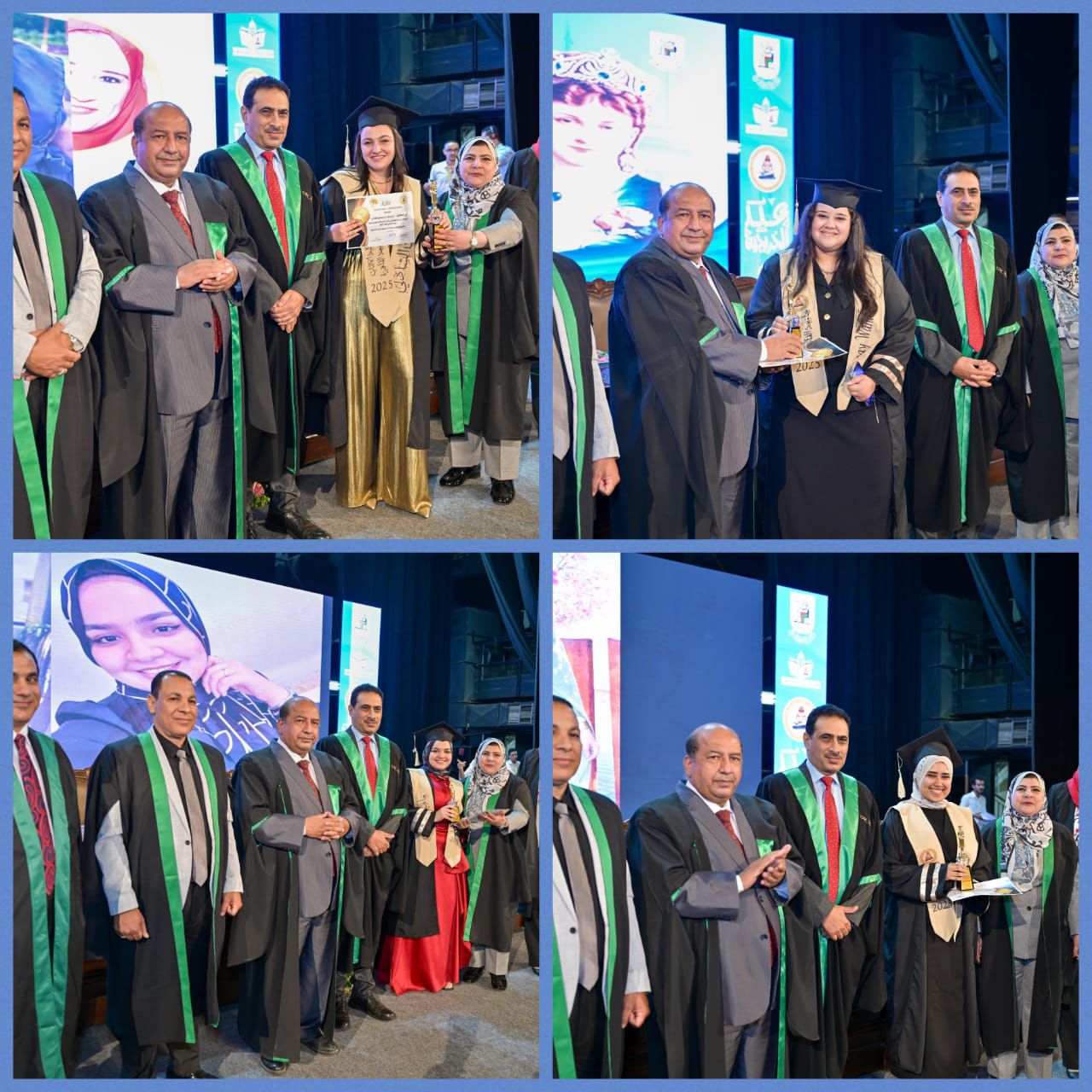 بدأت وقائع الاحتفال بالتقاط صورة جماعية للخريجين أمام قبة الجامعة بحضور د.محمود السعيد، ود.أحمد رجب، ثم بدأ الاحتفال داخل القاعة بالسلام الجمهوري، وتلاوة آيات من القرآن الكريم، أعقبها عرض فيديو وثائقي عن الكلية، ثم كلمة ممثلي الخريجين، وكلمة عميد الكلية، ثم كلمة د. أحمد رجب، وكلمة د. محمود السعيد، ثم بدء فعاليات التكريم.