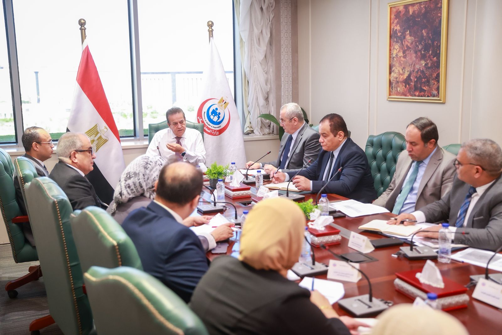 وحضر الاجتماع كل من: الدكتور بيتر وجيه، مساعد وزير الصحة للطب العلاجي، والدكتورة مها إبراهيم، رئيس أمانة المراكز الطبية المتخصصة، والدكتور محمد مصطفى، رئيس هيئة المستشفيات والمعاهد التعليمية، والدكتور أحمد مصطفى، رئيس هيئة التأمين الصحي، والدكتور محمد شقوير، رئيس المؤسسة العلاجية، والدكتور محمد عبدالوهاب، الوكيل الدائم والمشرف على قطاع مكتب الوزير، والدكتور محمد عبدالحكيم، رئيس الإدارة المركزية للطب العلاجي، والدكتور محمد رمضان، رئيس الإدارة المركزية للأمانة العامة، والدكتورة هند عاشور، رئيس الإدارة العامة للصيدلة.