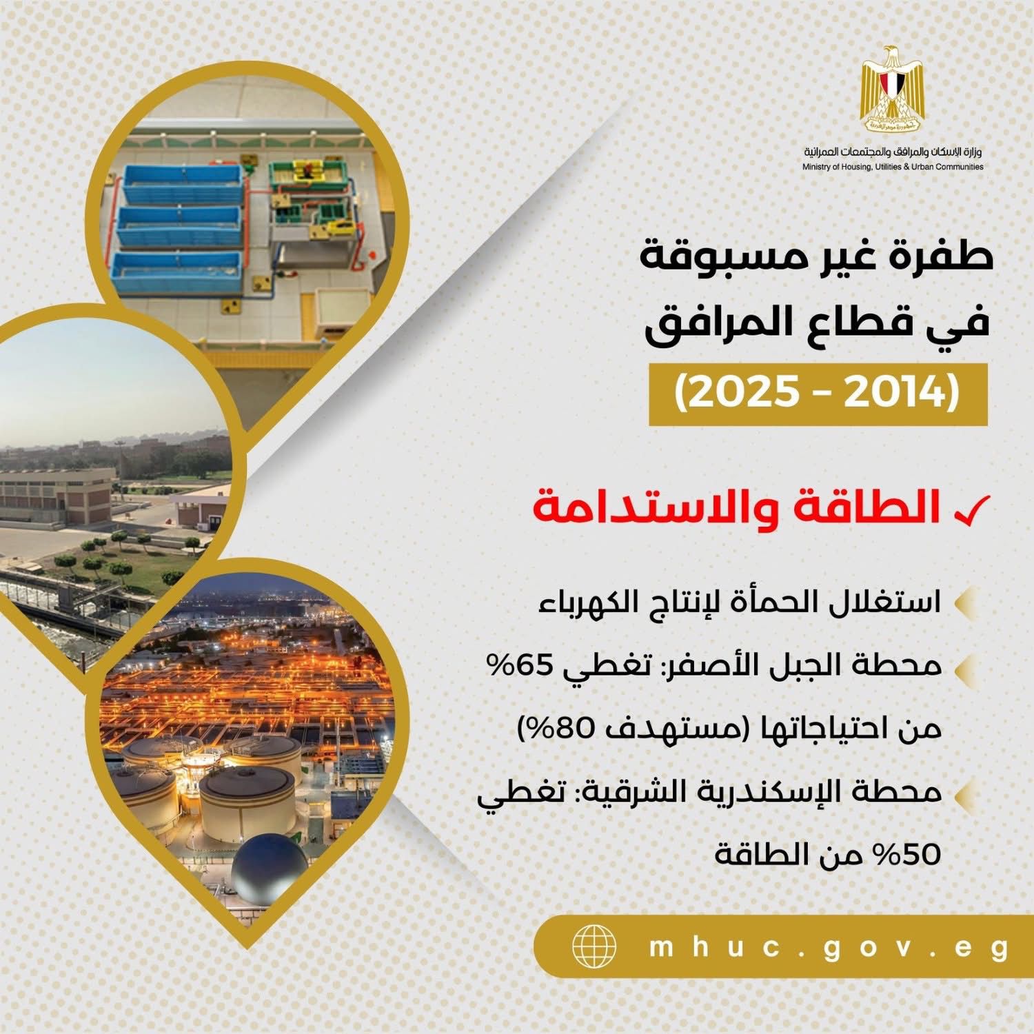 وأوضح الوزير أن تقليل الفاقد في مياه الشرب كان محوراً أساسياً بالخطة، حيث تم تركيب 5 ملايين قطعة موفرة بالتعاون مع وزارة الإنتاج الحربي والهيئة العربية للتصنيع، منها 4.2 مليون قطعة تم بيعها وتركيبها، فضلاً عن التوسع في تركيب العدادات مسبقة الدفع والعدادات الذكية، مستهدفاً أكثر من 20.4 مليون مشترك، ولفت إلى أن نسبة الفاقد انخفضت من 30.5% عام 2014 إلى 25.7% عام 2025، مع خطة للوصول إلى 20% بحلول 2030، مشيراً إلى أن إعادة استخدام مياه غسيل المرشحات و«الروبة» وفرت ما يقرب من 355 مليون جنيه سنوياً.