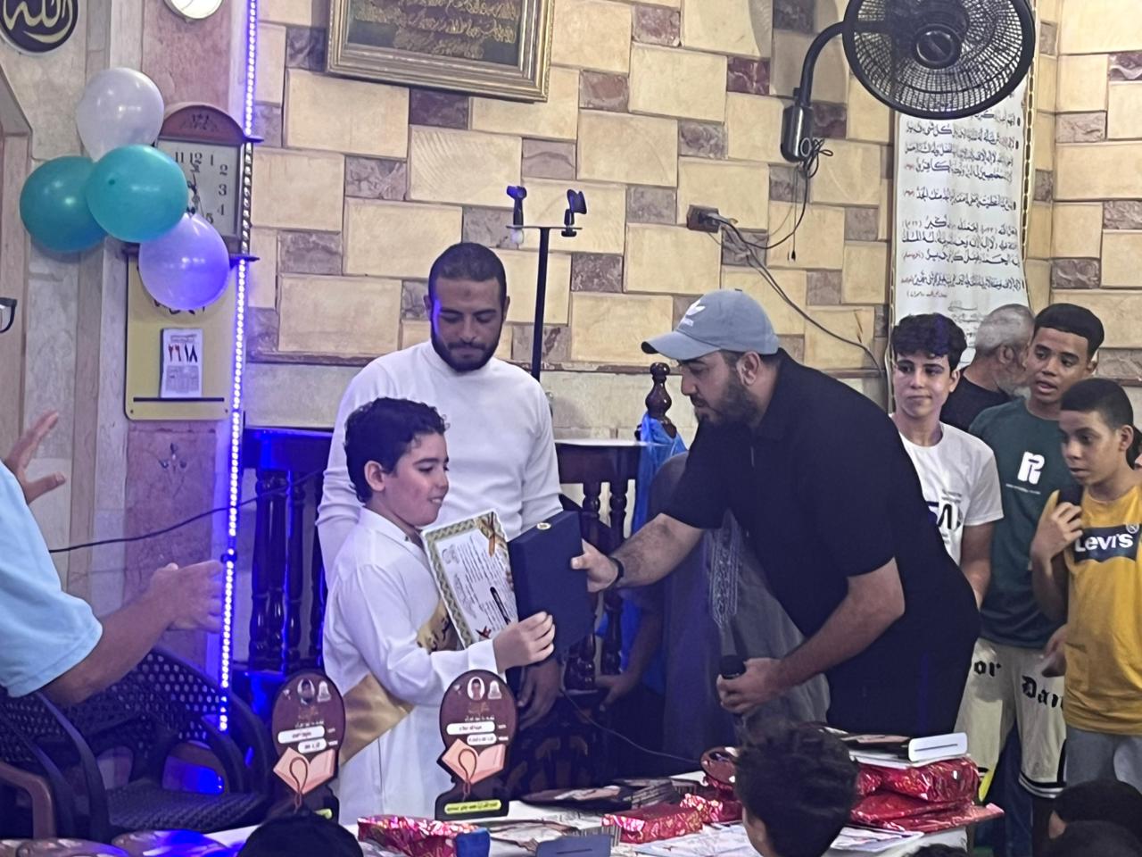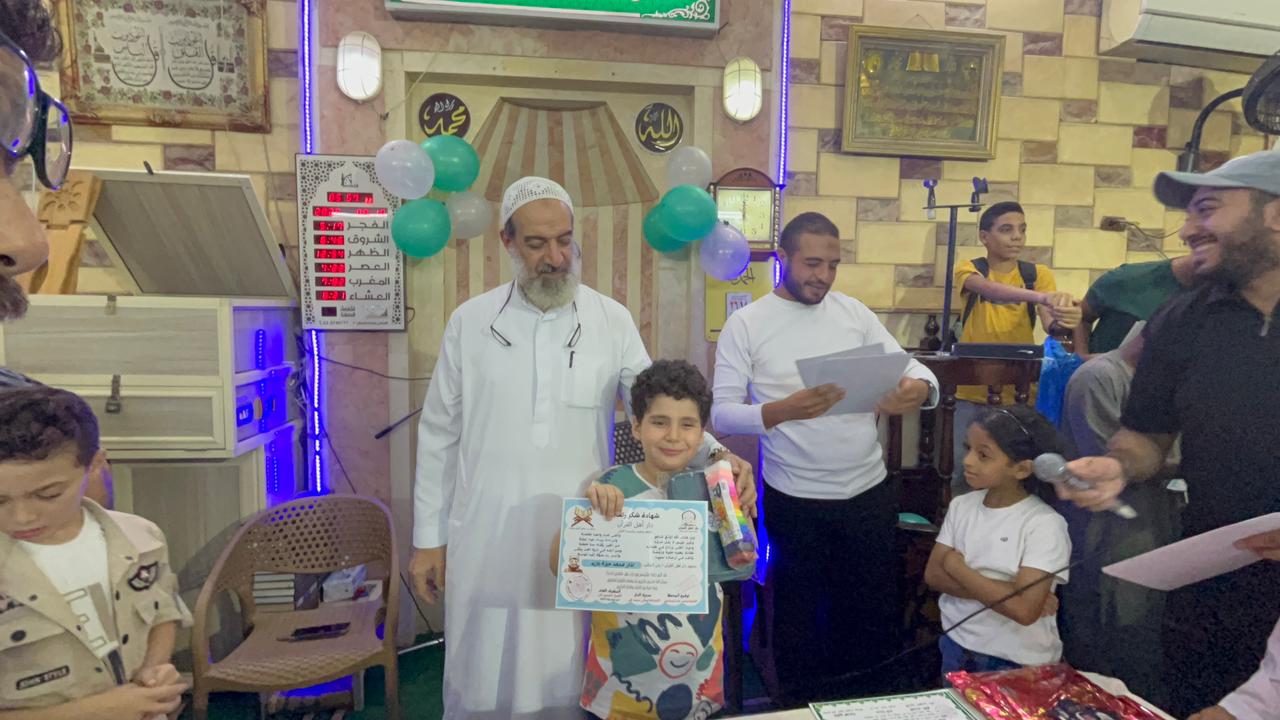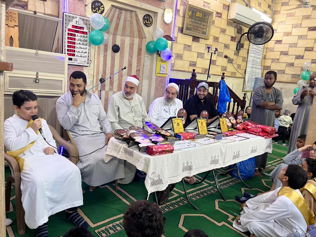 أقيم الحفل بحضور الشيخ خميس زكي إمام المسجد وكبيرة أئمة وزارة الأوقاف، والشيخ محمد جابر مسؤول مكتب التحفيظ بالمسجد، الذي أكد أن المكتب يعمل على مدار العام على تنظيم حلقات لتحفيظ القرآن الكريم ومتابعة التلاميذ بشكل مستمر، مشيرًا إلى أن الهدف هو إعداد جيل ناشئ مرتبط بالقرآن وقادر على تمثيل قيمه في سلوكه وحياته اليومية، لافتًا إلى أن هذا التكريم يأتي تتويجًا لجهود التلاميذ وتشجيعًا لهم على الاستمرار