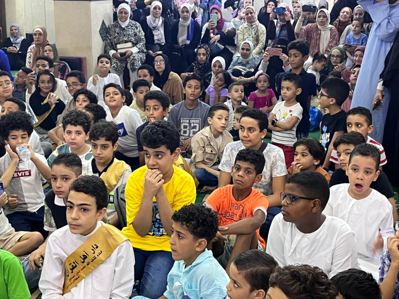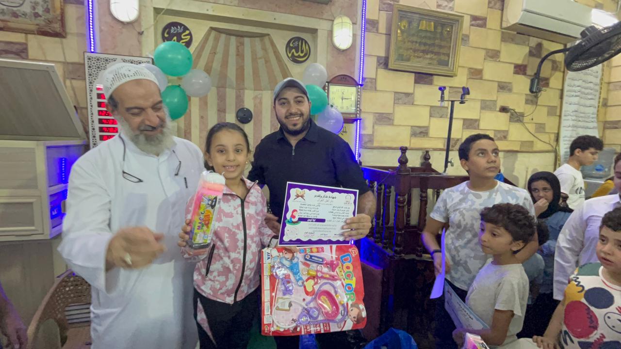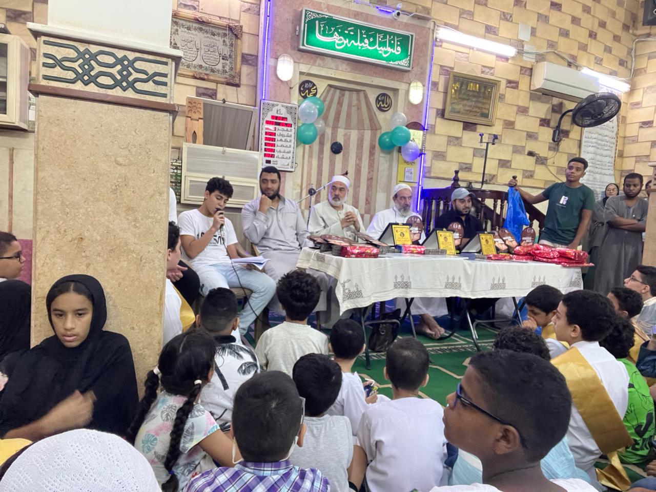 أقيم الحفل بحضور الشيخ خميس زكي إمام المسجد وكبيرة أئمة وزارة الأوقاف، والشيخ محمد جابر مسؤول مكتب التحفيظ بالمسجد، الذي أكد أن المكتب يعمل على مدار العام على تنظيم حلقات لتحفيظ القرآن الكريم ومتابعة التلاميذ بشكل مستمر، مشيرًا إلى أن الهدف هو إعداد جيل ناشئ مرتبط بالقرآن وقادر على تمثيل قيمه في سلوكه وحياته اليومية، لافتًا إلى أن هذا التكريم يأتي تتويجًا لجهود التلاميذ وتشجيعًا لهم على الاستمرار