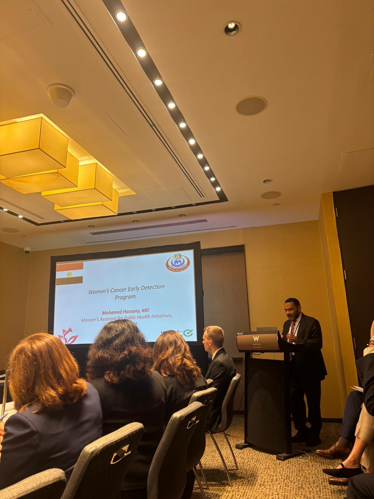 أوضح الدكتور حسام عبدالغفار، المتحدث الرسمي للوزارة، أن الدكتور محمد حساني، مساعد وزير الصحة لشؤون المشروعات ومبادرات الصحة العامة، ألقى كلمة «مصر» نيابةً عن الدكتور خالد عبدالغفار، نائب رئيس مجلس الوزراء ووزير الصحة والسكان. استعرض حساني التجربة المصرية الرائدة في تعزيز صحة المرأة والحد من عبء السرطان من خلال مبادرات رئاسية شاملة.