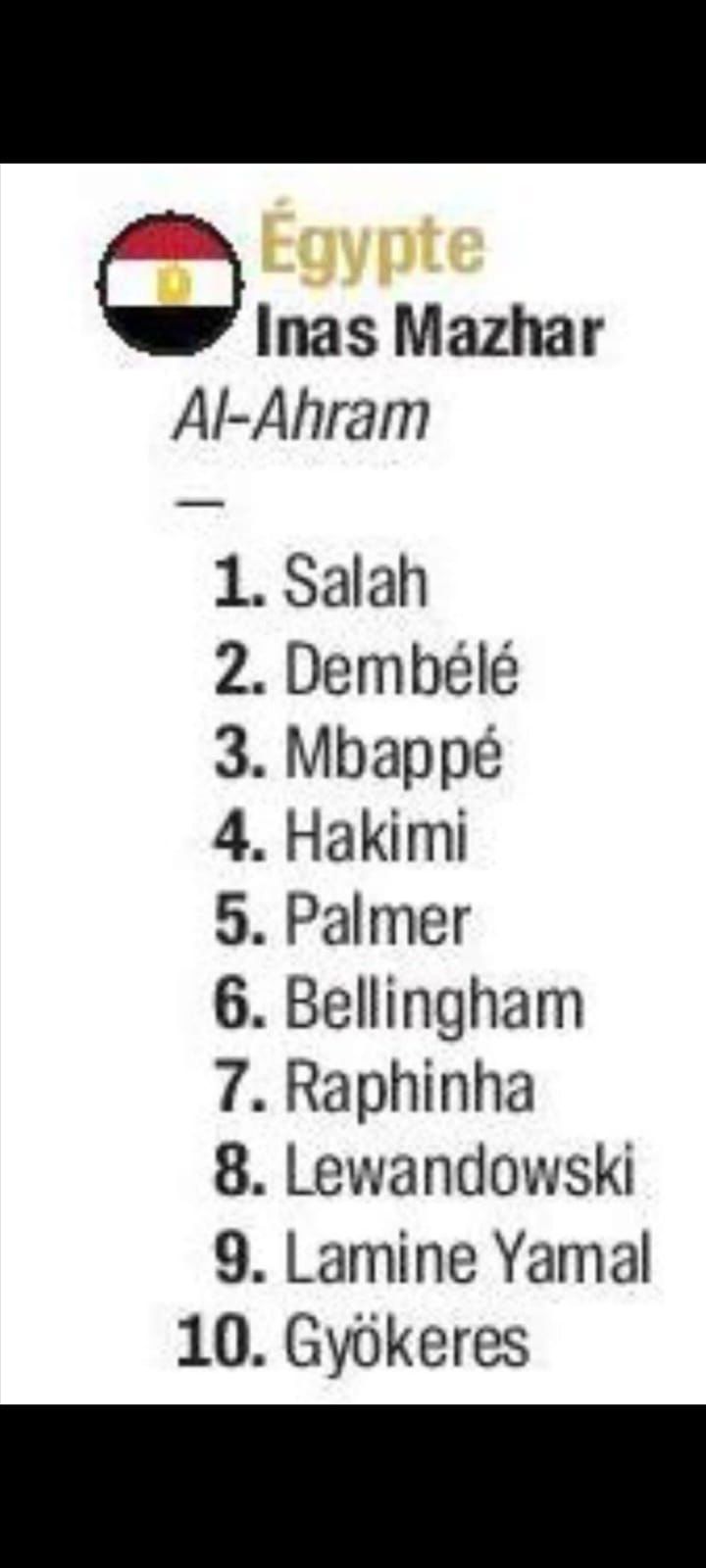 وأضاف اتحاد الكرة: "قبل أن تكشف صحيفة "فرانس فوتبول" بشكل رسمي عن اختيارات الدكتورة إيناس مظهر، والتي تصدرها محمد صلاح في المركز الأول، وهو الأمر البديهي والذي لم يكن في حاجة لدلائل أو إثبات، فدعم مصر متمثلا في صوتها باختيارات الكرة الذهبية لنجم الكرة المصرية وقائد منتخبها وسفيرها الذي يشرفها عالميا منذ سنوات أمر بديهي لا يقبل النقاش".