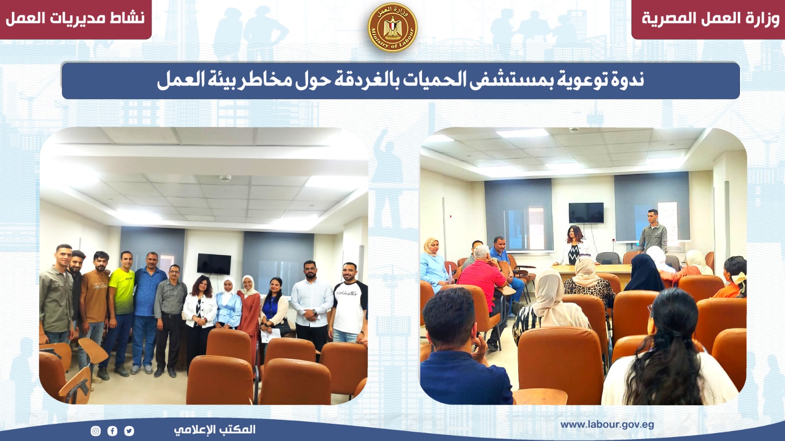 نظمت مديرية العمل بمحافظة البحر الأحمر ندوة توعوية بمستشفى الحميات بالغردقة، تناولت مفاهيم وإجراءات السلامة والصحة المهنية، في إطار توجيهات الوزير محمد جبران وزير العمل، وضمن خطة الوزارة لنشر ثقافة الوقاية بمواقع العمل المختلفة. وتناولت الندوة مستجدات الكتاب الرابع من قانون العمل رقم 14 لسنة 2025، والخاص بتأمين بيئة العمل، وطرق الحد من المخاطر المهنية داخل المنشآت الصحية.
