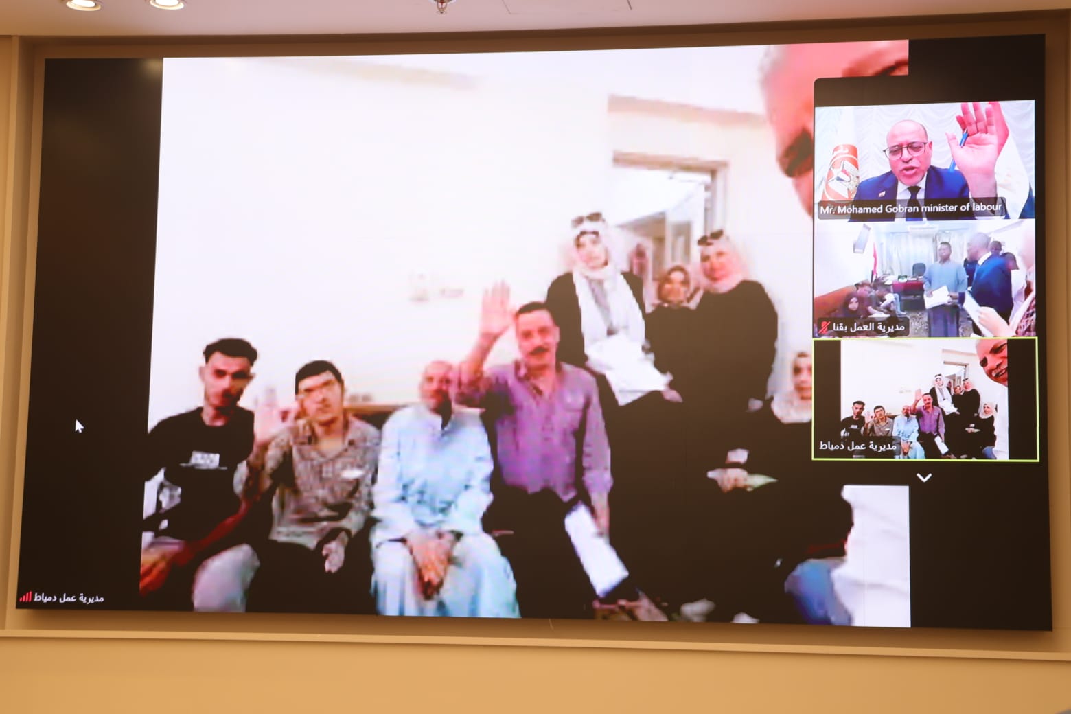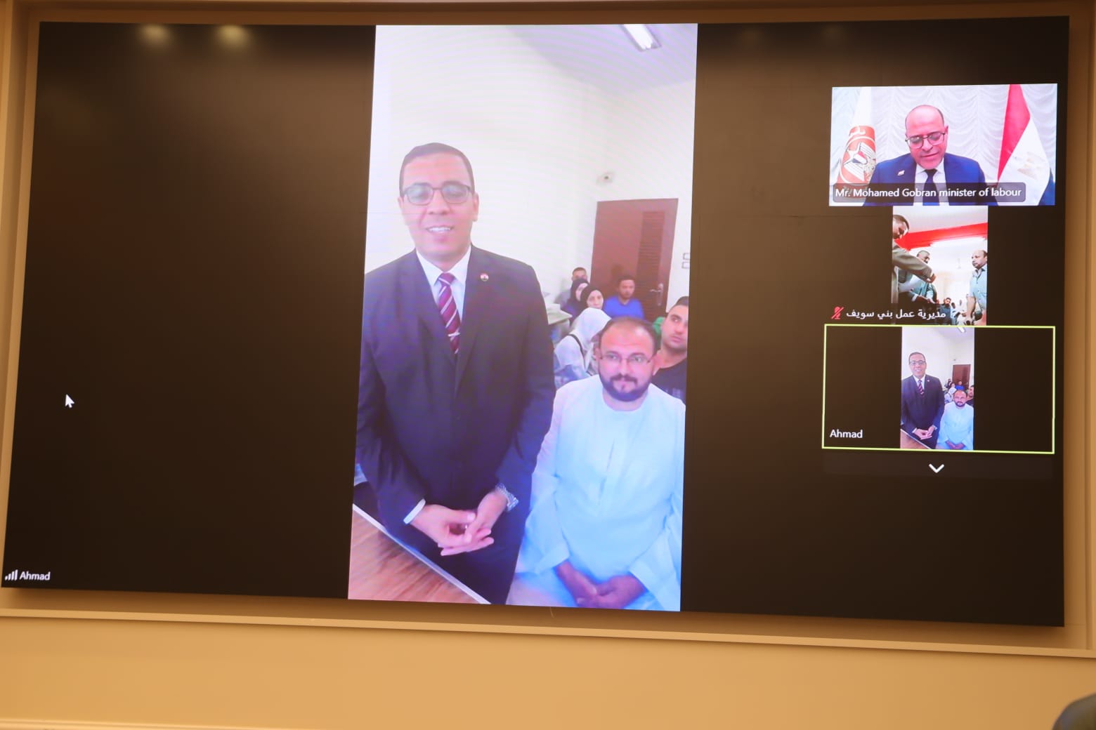 شهد وزير العمل، محمد جبران، صباح اليوم الاثنين، من مكتبه بالعاصمة الإدارية الجديدة ،عن طريق "الفيديو كونفرانس "،وفي وقت واحد ، فعاليات تسليم عقود عمل ، نظمتها مديريات العمل في 26 محافظة ، وذلك بتوفير أكثر من 700 فرصة عمل في شركات القطاع الخاص ، معظمهم "ذوي همم".