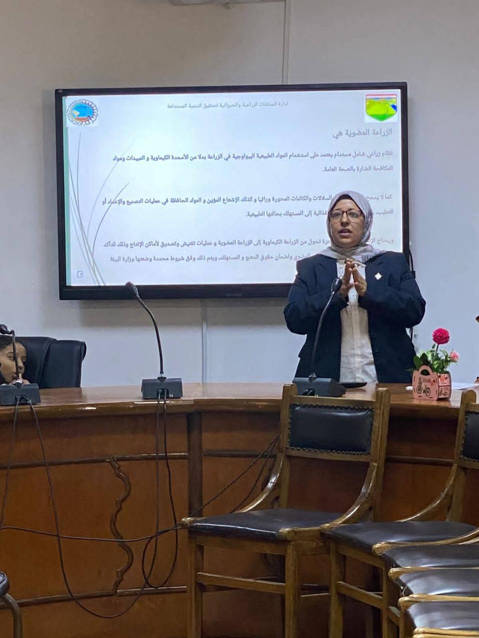 واستعرضت الدكتورة منى مرسي، أستاذ ميكروبيولوجيا الأراضي بمركز بحوث الصحراء، مفهوم الزراعة العضوية كأحد الحلول المستدامة لمواجهة تحديات الأمن الغذائي، مشددة على ضرورة التوسع في تطبيق هذه الممارسات الحديثة في شمال سيناء، بما يتماشى مع طبيعة البيئة الصحراوية ومواردها المتاحة.