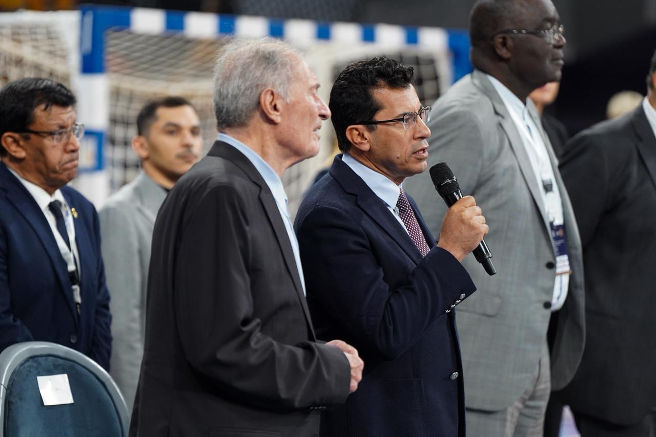 كما حضر التتويج أيضًا الدكتور حسن مصطفى رئيس الاتحاد الدولي لكرة اليد، والكابتن خالد فتحي رئيس الاتحاد المصري لكرة اليد، والأستاذ محمد يحيى لطفي رئيس الشركة المتحدة للرياضة، وعمرو صلاح مدير بطولة العالم، وعدد من مسؤولي الاتحاد المصري.