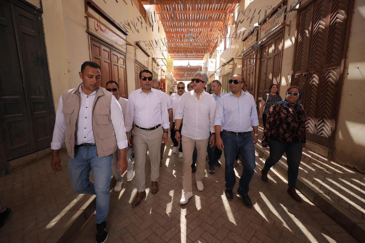 وتفقد السيد الوزير معرض الصور التراثية بوكالة الجداري والذي يحكي تاريخ إسنا والحرف والصناعات التراثية بها والعادات والتقاليد الأصيلة لأهلها. كما استمع إلى شرح مفصل من المهندس مهندس كريم إبراهيم مدير مشروع الاستثمار في السياحة المستدامة والمتكاملة بمدينة إسنا، عن مكونات مشروع إعادة إحياء إسنا التاريخية والذي تميز برؤية تنموية شاملة تمزج بين الحفاظ على التراث العمراني وإحياء الأنشطة الاقتصادية والثقافية في المدينة، والذي تضمن ترميم وكالة الجداوي وفتحها للجمهور لأول مرة منذ عقود، وتحسين موقع معبد خنوم، فضلا عن تطوير سوق القيسارية التقليدي، وتجديد واجهات 15 مبني تراثي وتطوير البازارات التاريخية، بالإضافة إلى تدريب أكثر من 400 شاب وفتاة من إسنا في مجالات الحرف التقليدية والترميم والإرشاد السياحي.