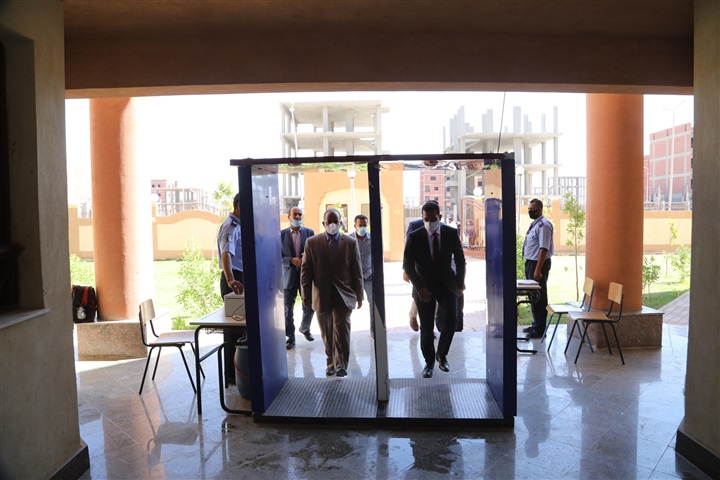 تفقد حازم عمر ومرافقيه عدد من مقرات اللجان هى ( فاطمة الزهراء الثانوية بنات– أبو بكر الصديق الثانوية بنين - مدرسة المتفوقين للعلوم والتكنولوجيا " stem" ) ووجه نائب المحافظ التحية للطلاب المصطفين للدخول وقام بتشجيعهم متمنياً لهم التوفيق والنجاح فى أداء امتحاناتهم كما طالبهم بضرورة الالتزام بكافة الإجراءات الوقائية والاحترازية للحماية من فيروس كورونا وإتباع النصائح الطبية للحفاظ على سلامتهم وصحتهم وأمنهم داخل وخارج اللجان ، كما وجه الشكر للجهات الأمنية ومسئولى الصحة على جهودهم فى تأمين وتنظيم الطلاب ورعايتهم صحياً ووقائياً ضد فيروس كورونا المستجد.