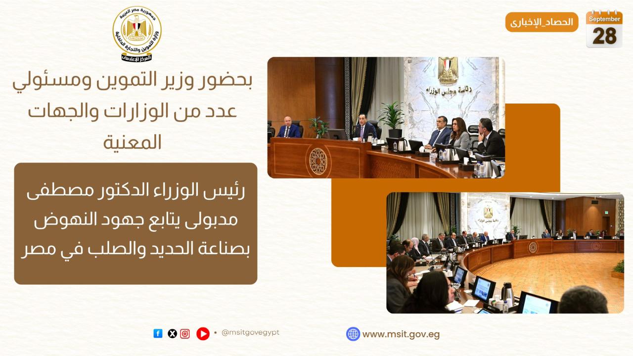 كما شارك الدكتور الوزير في الاجتماع الذي عقده الدكتور مصطفى مدبولي رئيس مجلس الوزراء، بمشاركة عدد من الوزراء ومسؤولي الجهات المعنية، لمتابعة جهود الدولة للنهوض بصناعة الحديد والصلب باعتبارها من الصناعات الإستراتيجية الداعمة للاقتصاد الوطني.
