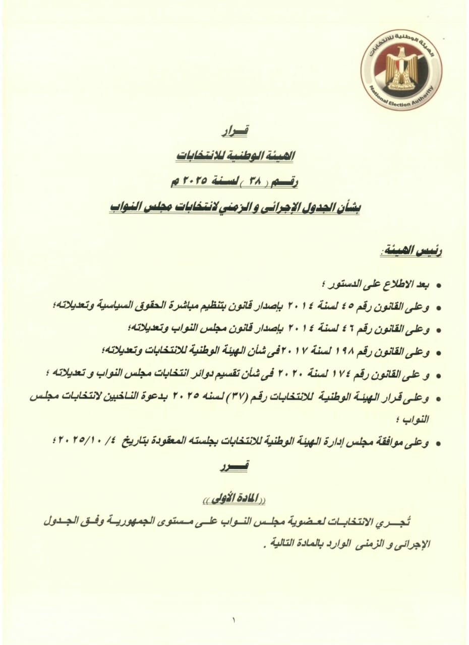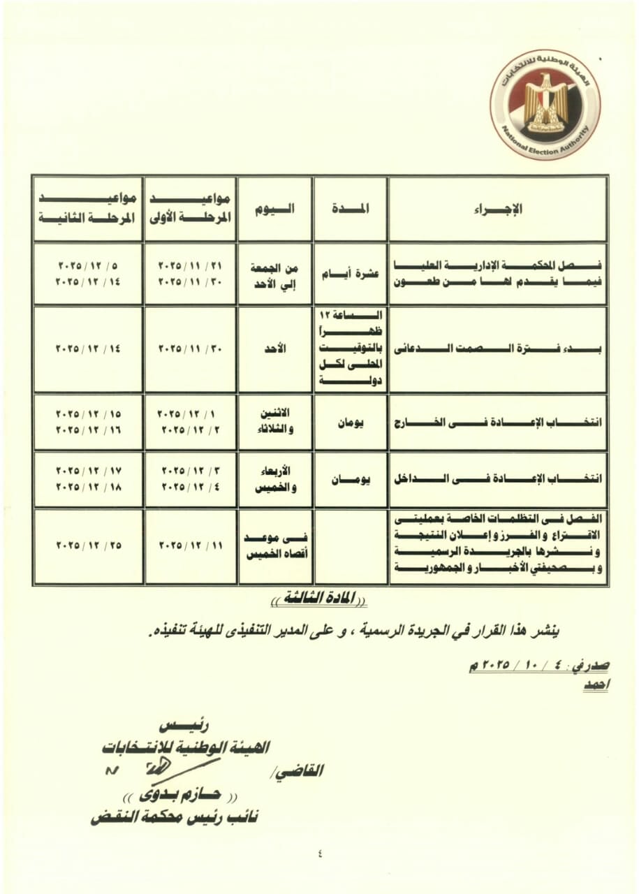 التصويت خارج مصر يومي 21 و22 نوفمبر، وداخليًا يومي 24 و25 نوفمبر.