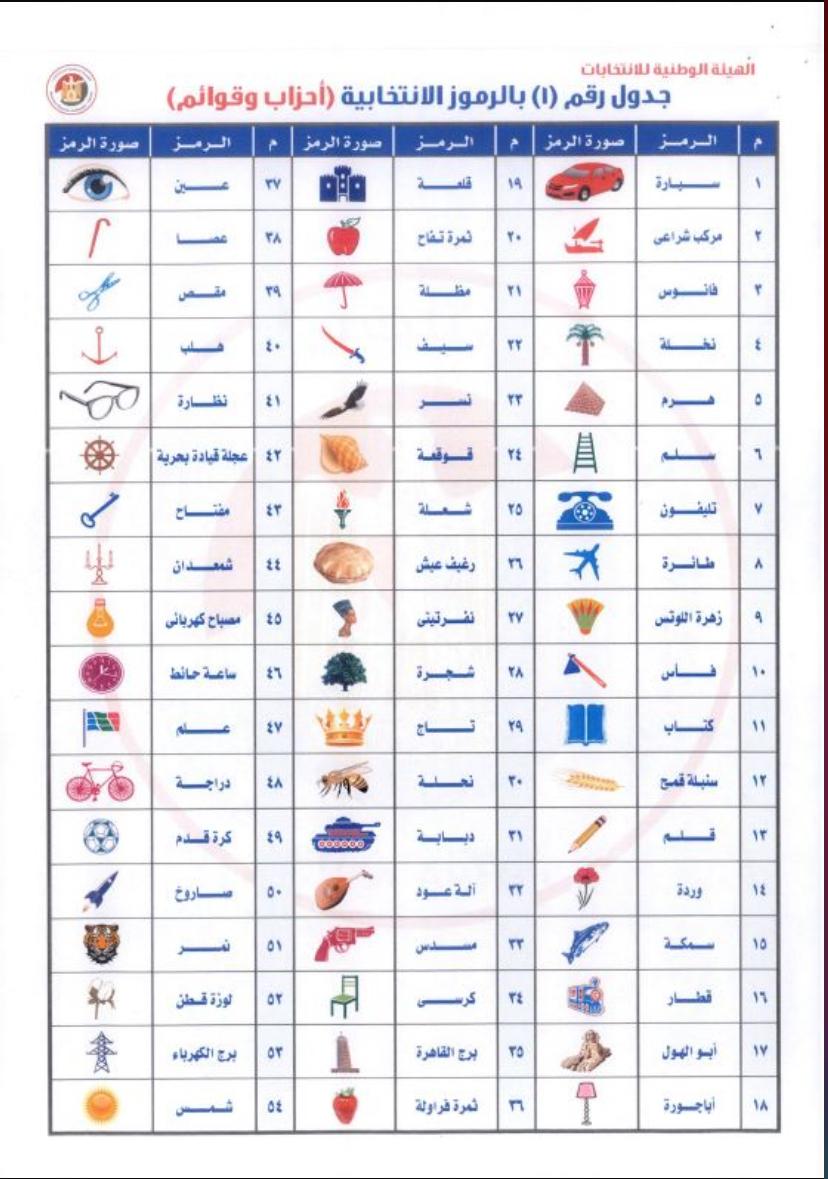 وتضمن القرار رقم 46 لسنة 2025 كشفين بالرموز الانتخابية التي من المقرر الاختيار منها لمرشحي نظام الفردي والقوائم.