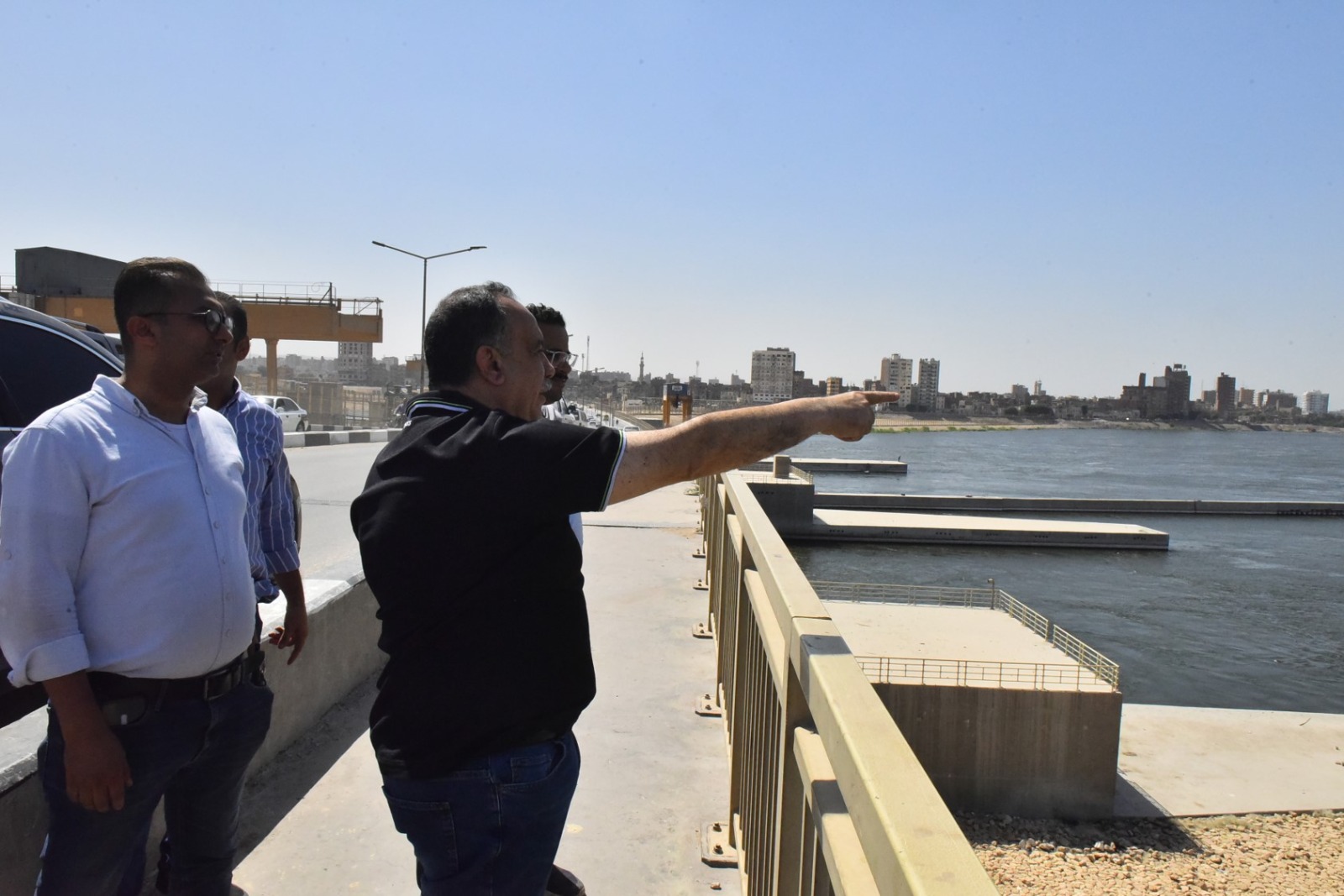 رافق المحافظ خلال الزيارة الأستاذ خالد عبد الرؤوف السكرتير العام المساعد للمحافظة، والمهندس حاتم مختار رئيس الإدارة المركزية للموارد المائية والري بأسيوط، والمهندس أبو العيون عرفات مدير عام الري، والمهندس مقبل احمد مدير عام قناطر أسيوط الجديدة والدكتور عبد الرحيم أحمد وكيل وزارة الزراعة، وحسن عثمان وكيل وزارة التضامن الاجتماعي، وأحمد عبدالحكيم رئيس مركز ومدينة الفتح، وأمل جميل مدير عام العلاقات والمتابعة والمتحدث بإسم شركة مياه الشرب والصرف الصحي، وعدد من مسئولي قناطر أسيوط الجديدة.