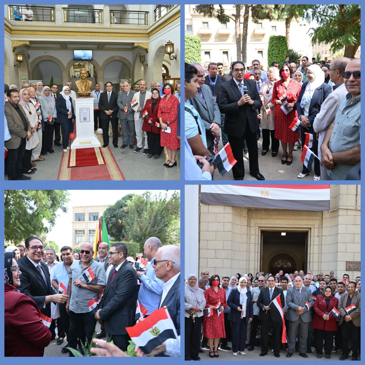 ومن جانبها، أشارت د. غادة عبد الباري القائم بأعمال نائب رئيس الجامعة لشئون خدمة المجتمع وتنمية البيئة، إلى تنظيم الجامعة عدة فعاليات وندوات ثقافية وفنية، بمشاركة طلاب الكليات وأعضاء هيئة التدريس والعاملين، إيمانًا منها بدور الجامعة التنويري والتثقيفي في تعزيز الوعي الوطني، وترسيخ روح الفخر والاعتزاز بتاريخ مصر المجيد وإنجازاتها عبر العصور، مؤكدًة أن هذه الفعاليات تعكس رسالة جامعة القاهرة في بناء شخصية متكاملة للطالب تجمع بين التفوق العلمي وتجسد الانتماء الوطني والالتزام بالقيم والمبادئ التي ترفع من شأن الوطن.
