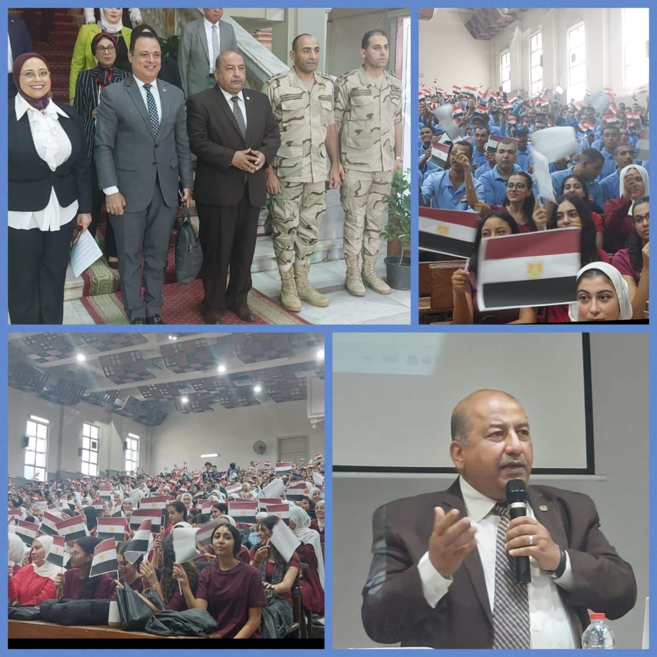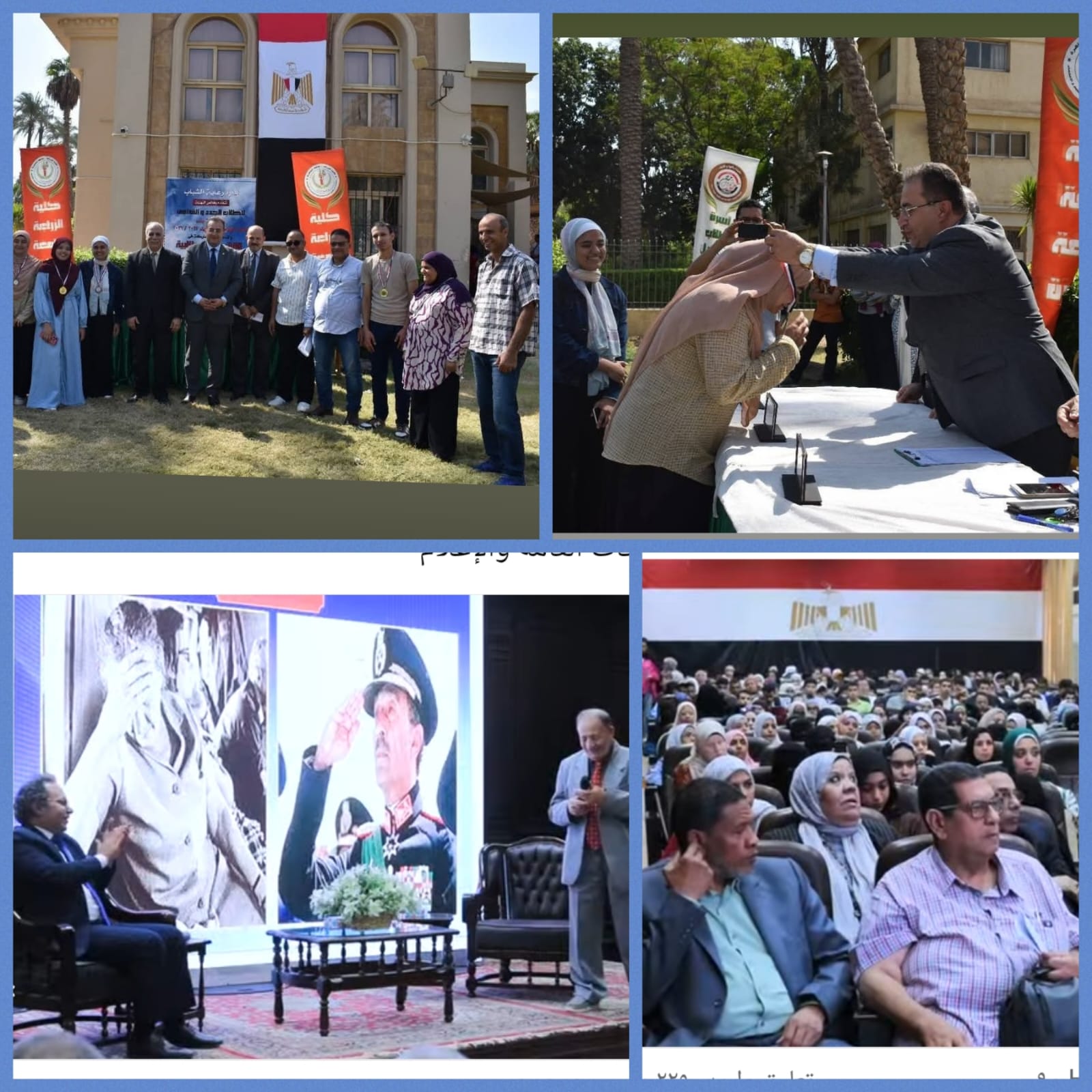 أما في كلية الآداب، فقد نظم قطاع خدمة المجتمع وتنمية البيئة محاضرة تثقيفية بعنوان "٦ أكتوبر نصر مجيد وذكرى خالدة"، وقدم للتدوة الأستاذ الدكتور جمال الشاذلي نائب رئيس الجامعة لشئون التعليم والطلاب السابق، حيث تناول مجموعة من المحاور التي أبرزت التحولات الكبرى التي مهدت لانتصار أكتوبر.
