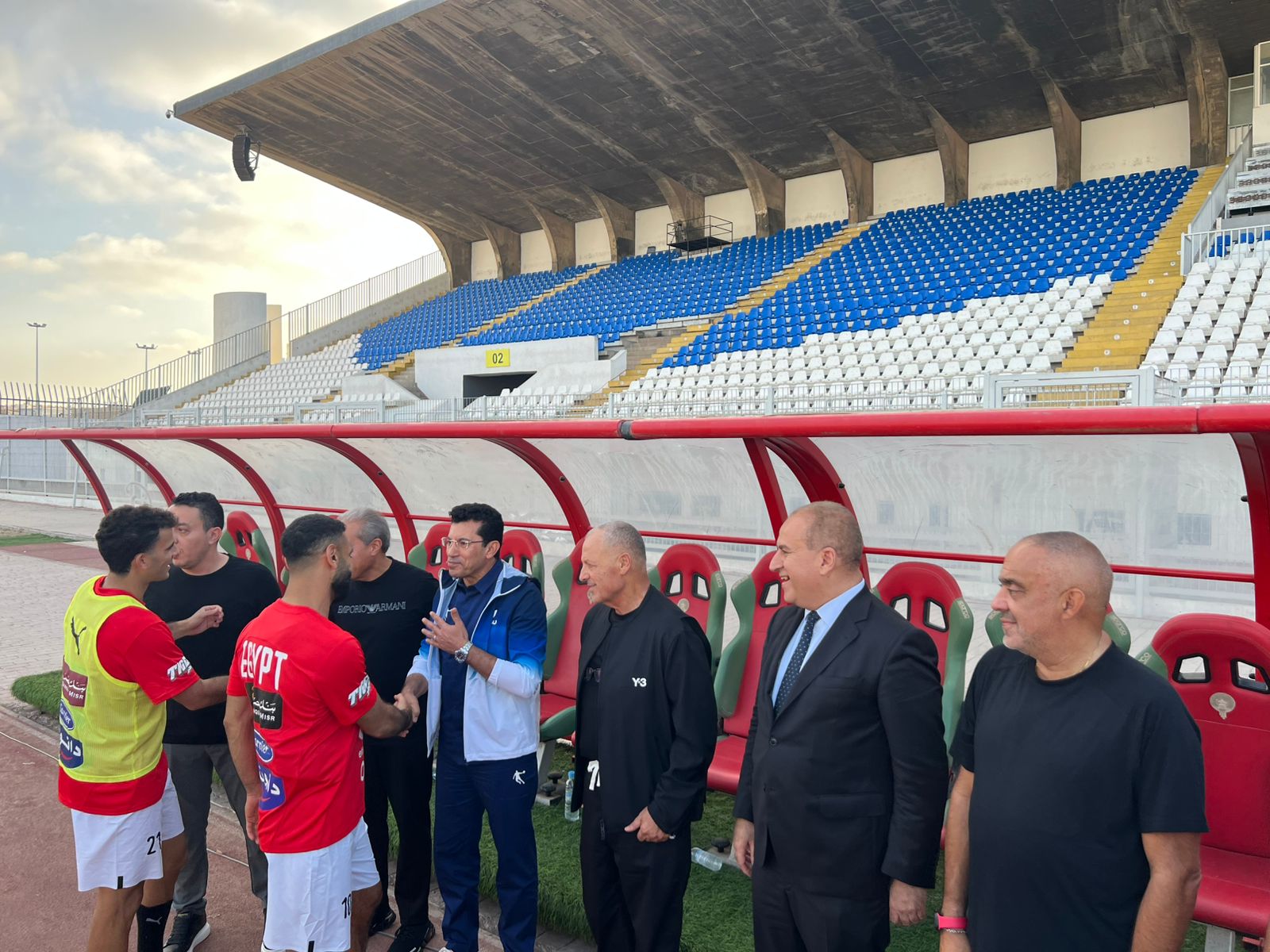 وخلال الزيارة، نقل وزير الشباب والرياضة خلال لقاءه باللاعبين والجهاز الفني بقيادة الكابتن حسام حسن، تحيات ودعم الدولة المصرية بقيادة فخامة الرئيس عبد الفتاح السيسي رئيس الجمهورية، مؤكداً على ثقة الجماهير المصرية في قدرة المنتخب الوطني على الفوز والتأهل لبطولة كأس العالم وايضا تقديم أداء يليق بمكانة مصر وتاريخها الكروي العريق، مؤكداً أن التأهل إلى كأس العالم يمثل هدفاً وطنياً يسعى الجميع لتحقيقه لإسعاد الشعب المصري.