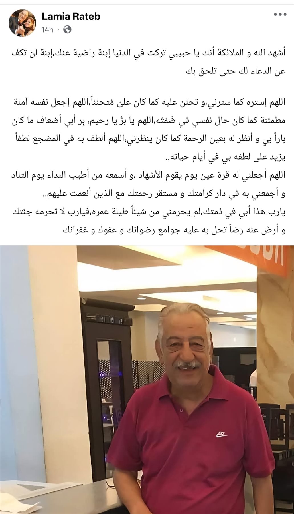 ابنتك لن تكف عن الدعاء لك حتى اللحاق بك.. لمياء راتب توجه رسالة مؤثرة لوالدها الراحل