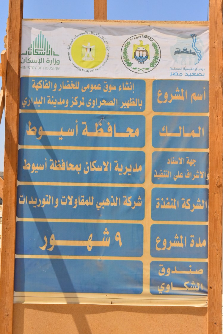 تفقد اللواء دكتور هشام أبو النصر، محافظ أسيوط، الأعمال الإنشائية الجارية بالسوق الحضري للخضار والفاكهة بقرية الكوم الأحمر التابعة لمركز البداري، والمقام على مساحة 20 ألف متر مربع بما يقارب 5 أفدنة بتكلفة تقديرية تصل إلى 115 مليون جنيه، ضمن مشروعات برنامج التنمية المحلية بصعيد مصر الذي تنفذه الحكومة المصرية بتمويل جزئي من البنك الدولي وذلك في إطار المتابعة الميدانية المستمرة للمشروعات التنموية العملاقة التي تنفذ على أرض المحافظة.
