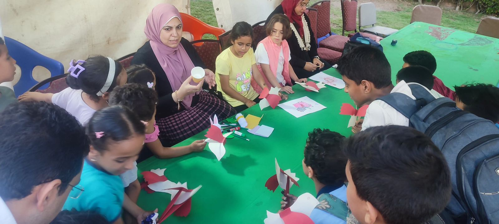 وشهد مخيم الطفل بالمعرض مجموعة متنوعة من الورش الفنية، منها ورشة رسم وتلوين، وورشة تلوين على الفخار، إلى جانب ورشة رسم وتلوين والرسم على الوجه. وتواصلت الفعاليات مع ورشة لتعليم مبادئ لغة الإشارة، بالإضافة إلى عدد من الورش الإبداعية، منها ورشة تعليم الرسم على التوال والكانسون بالألوان الأكريليك، وورشة رسم وتلوين وألعاب تفاعلية بالتعاون مع شركة مياه البحيرة، وورشة إعادة تدوير خامات، وغيرها من الورش.