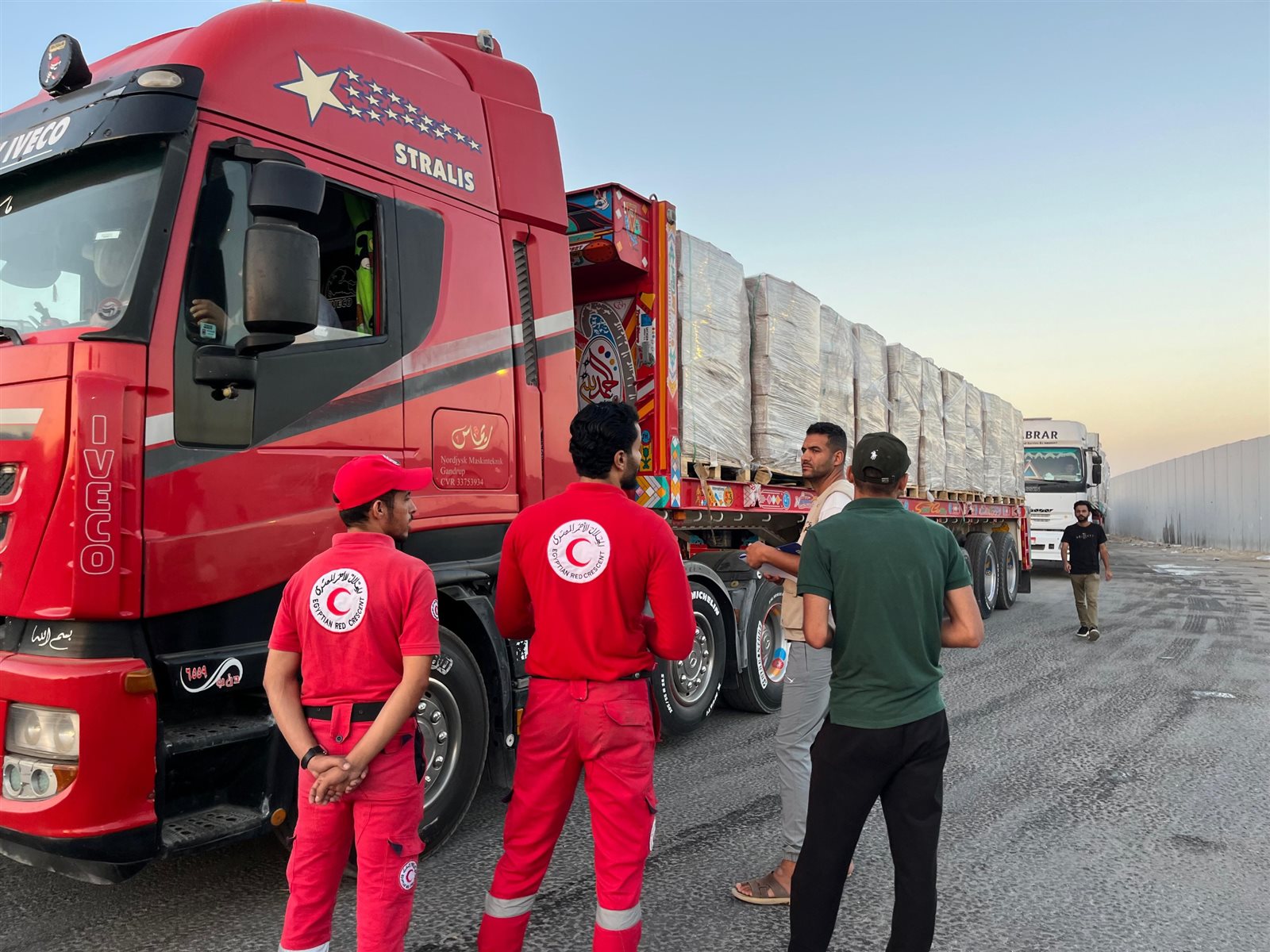 ويتواجد الهلال الأحمر المصري كآلية وطنية لتنسيق وتفويج المساعدات إلى غزة، على الحدود منذ بدء الأزمة حيث لم يتم غلق معبر رفح من الجانب المصري نهائيًا، وواصل تأهبه فى كافة المراكز اللوجستية وجهوده المتواصلة لدخول المساعدات التي بلغت أكثر من نصف مليون طن من المساعدات الإنسانية والإغاثة، وذلك بجهود 35 ألف متطوع بالجمعية.