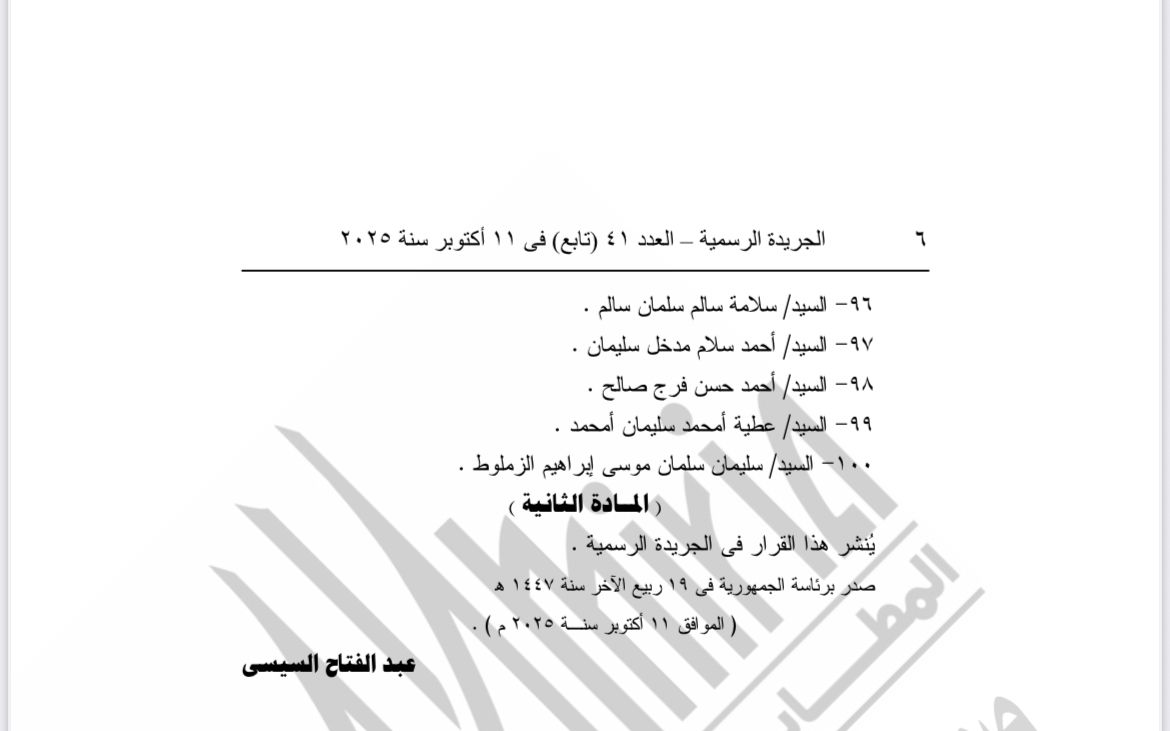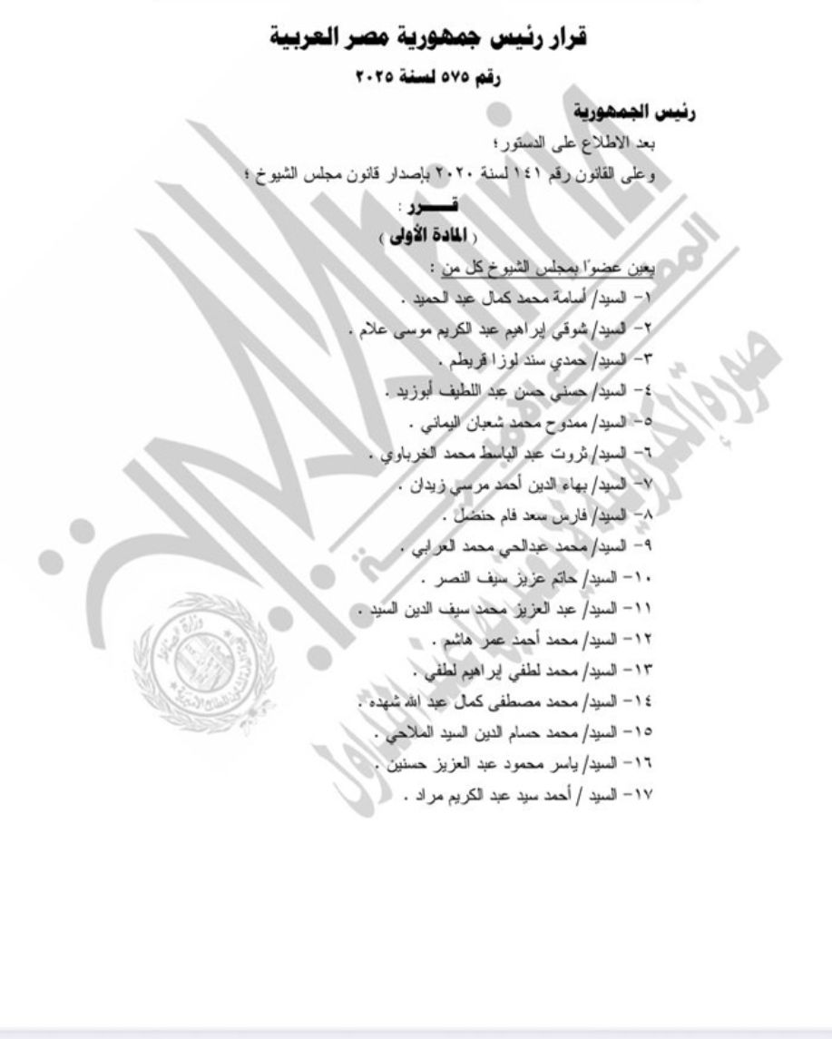 عاجل| تأكيدا لـ" مصر تايمز".. ننشر قرار رئيس الجمهورية بأسماء المعينين بمجلس الشيوخ