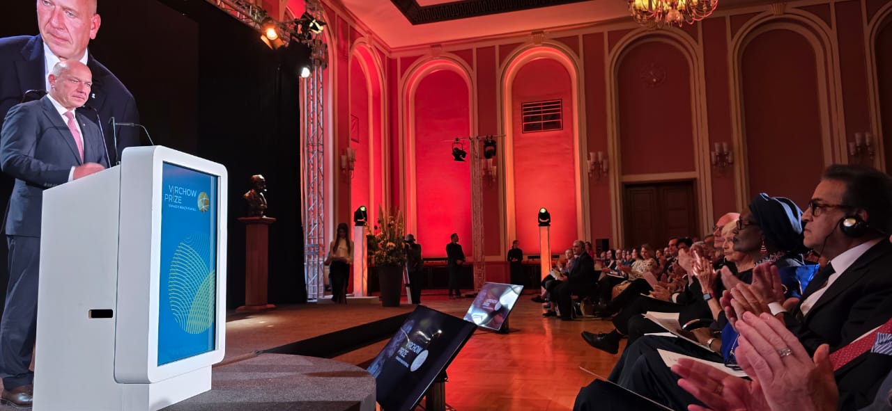 وأضاف «عبدالغفار» أن جائزة فيركو السنوية تمنح للأبحاث الرائدة والابتكارات الكبرى، والمساهمات البارزة ذات التأثير الكبير في الصحة العالمية، منوها إلى أن حفل توزيع الجائزة حضره نحو 250 ضيفًا متميزًا من الحكومة والبرلمان الألماني، والمجتمع المدني، والأوساط الأكاديمية، والسياسية، والقطاع الخاص، ومجتمع الصحة العالمي.