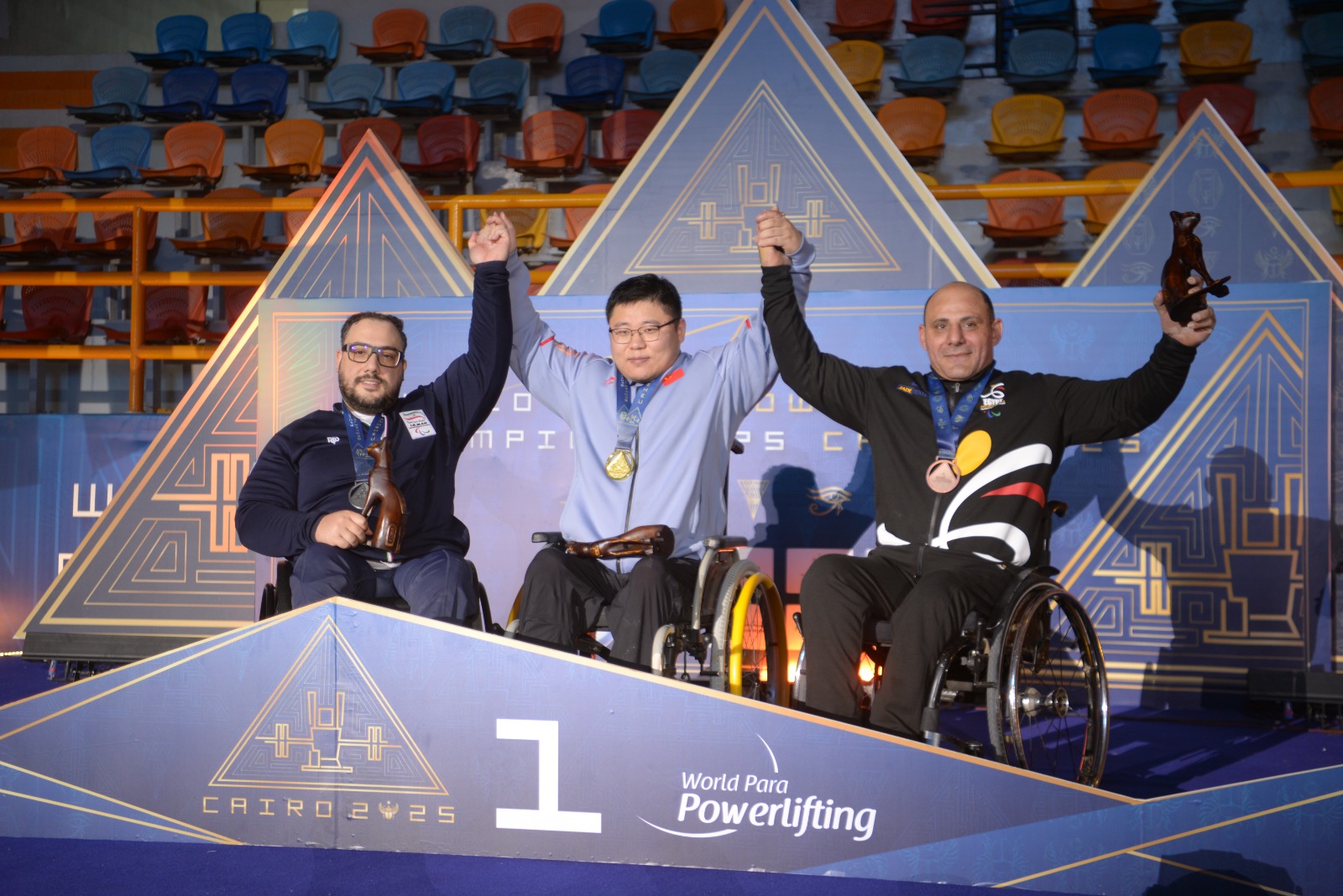 وفي منافسات وزن 59 كجم للرجال، تألق البطل الأولمبي محمد المنياوي ونجح في التتويج بالميدالية الذهبية بعد رفع 210 كجم، متفوقًا على العراقي مصطفى راضي صاحب الفضية برصيد 203 كجم، والصيني يونجكاي شي الذي نال البرونزية بعد رفع 200 كجم.