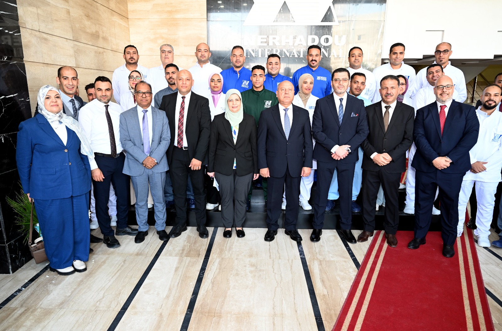 واستهل الوزير جولته بزيارة لمصنع شركة نيرهادو الدولية للأدوية والمكملات الغذائية، والمقام على مساحة 15.2 ألف متر مربع برأس مال 437 مليون جنيه مصري، وتبلغ طاقته الإنتاجية من أفلام سريعة الذوبان 840 مليون فيلم سنوياً، ومن الكبسولات 880 مليون كبسولة في السنة، ونسبة المكون المحلي 60%، ويوجه المصنع منتجاته للسوق المحلي وأسواق دول الخليج، ويوظف ألف عامل وموظف، وقد كان في استقبال الوزير بالمصنع الدكتور/ محمد محسن رئيس مجلس إدارة الشركة، وتفقد الوزير خلال الزيارة خطوط إنتاج الكبسولات (التعبئة والخلط والتغليف).