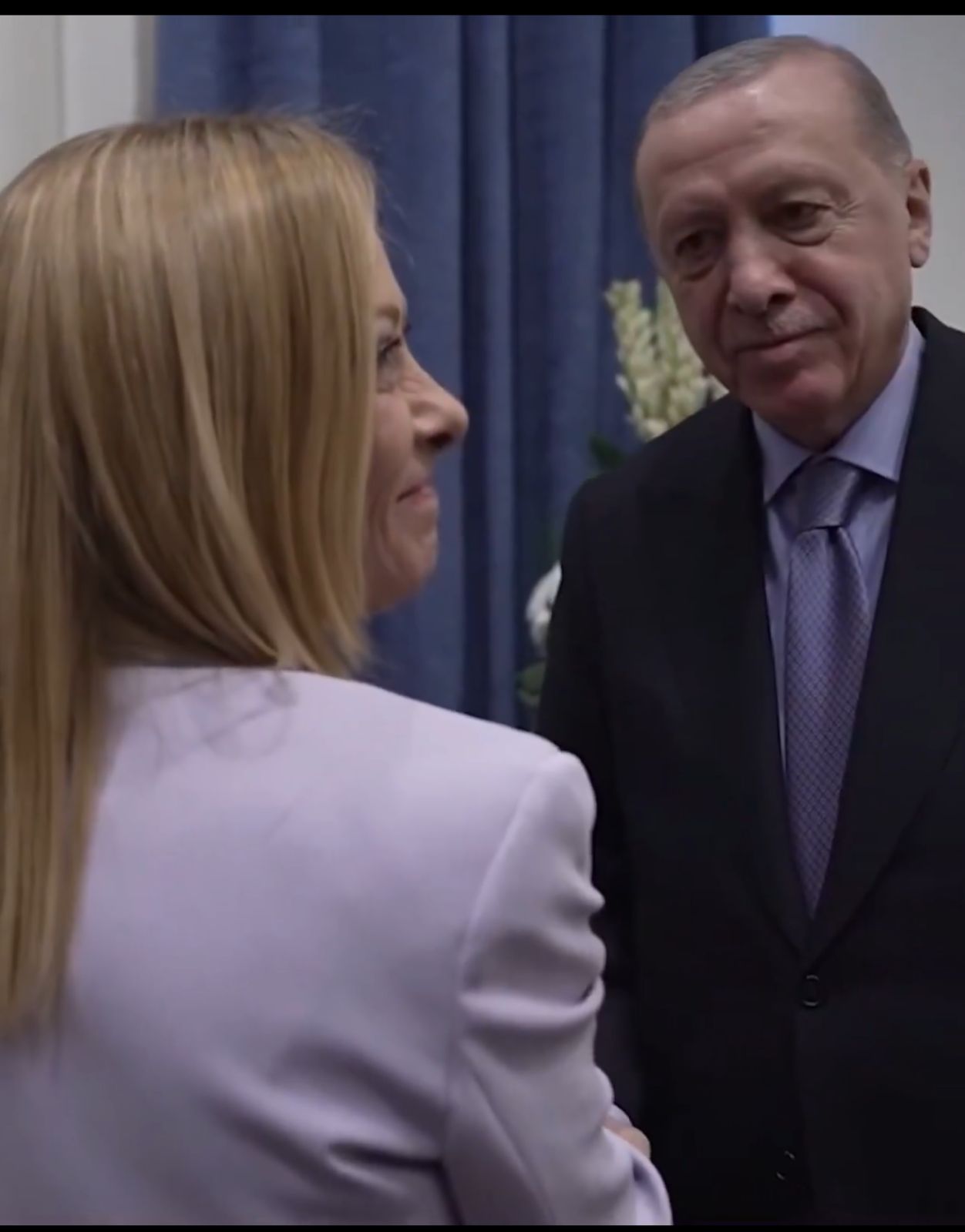 مازح الرئيس التركى رجب طيب أردوغان، رئيسة وزراء إيطاليا جورجيا ميلونى، على هامش تواجدهما في قمة شرم الشيخ للسلام.