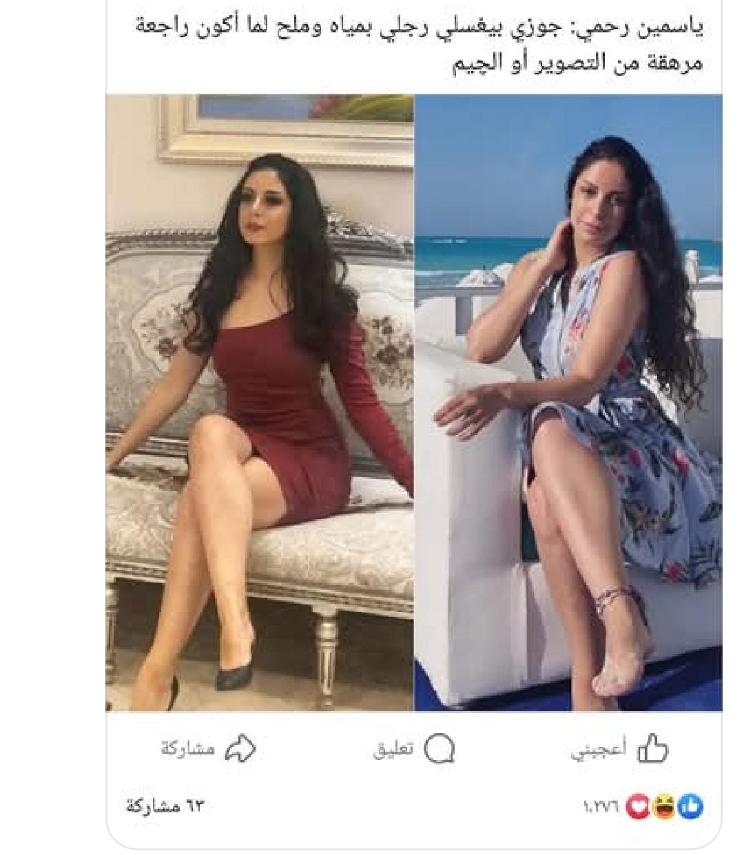 وتصدرت الفنانة ياسمين رحمي محرك البحث جوجل خلال الساعات القليلة الماضية، بعد انتشار تصريحات مزيفة لها عبر مواقع التواصل الاجتماعي، الأمر الذي أثار غضبها، ومن أبرز هذه التصريحات: جوزي بيغسلي رجلي بمياه وملح لما أكون راجعة مرهقة من التصوير أو الجيم.