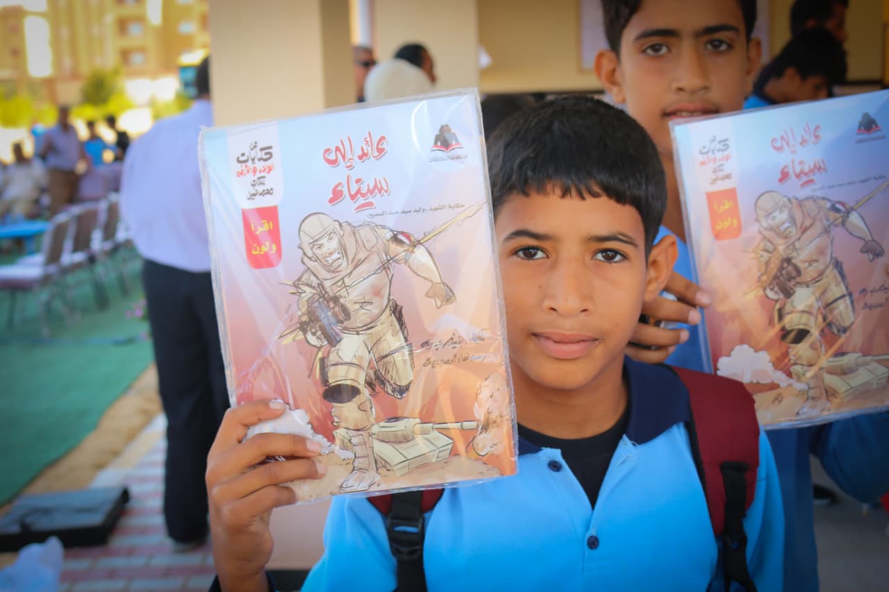 وشهدت القافلة، التي أقيمت فعالياتها اليوم بمجمع مدارس رفح الذي يضم نحو ٢٥٠٠ طفل من المرحلتين الابتدائية والإعدادية من أبناء رفح المصرية والمقيمين فيها من أبناء غزة، إقامة معرض للكتاب وتوزيع عدد من الكتب على جميع الأطفال، إلى جانب عروض فنية متميزة قدمتها فرقة طلائع الفنون الشعبية، ومجموعة من ورش الرسم، ومسرحية “السمسمية”.