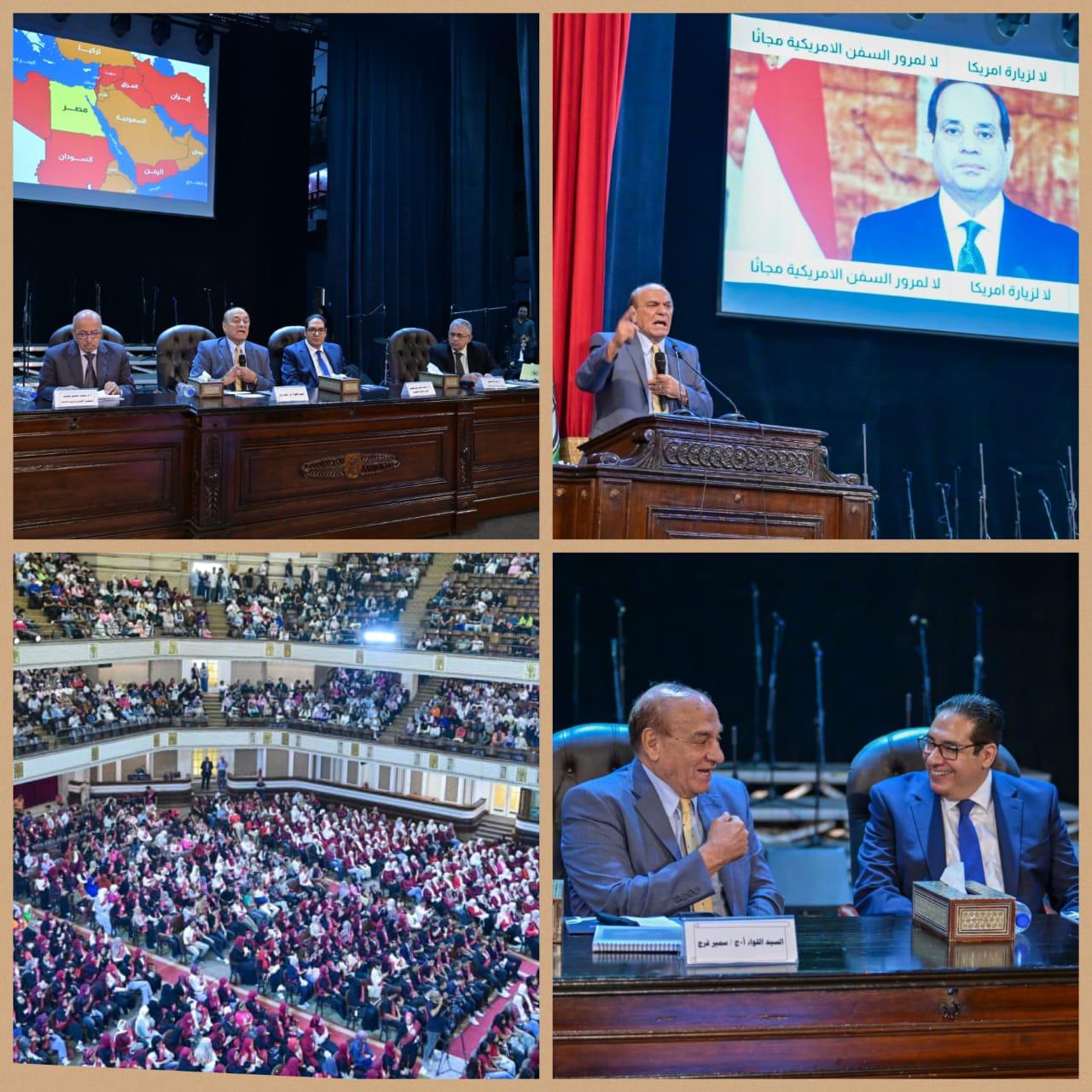 شهدت قاعة الاحتفالات بجامعة القاهرة برعاية وحضور الدكتور محمد سامي عبد الصادق رئيس الجامعة، المحاضرة التذكارية للواء أركان حرب د.سمير فرج تحت عنوان " الأمن القومي المصري وثوابت الدولة الوطنية"، وذلك في إطار احتفال جامعة القاهرة بالذكرى الثانية والخمسين لانتصارات أكتوبر المجيدة، بحضور د. أحمد رجب نائب رئيس الجامعة لشئون التعليم والطلاب، و د. عبد الله التطاوي المستشار الثقافي لرئيس الجامعة، ود. محمد منصور هيبة المستشار الإعلامي لرئيس الجامعةوالمتحدث الرسمى باسم الجامعة، وعمداء ووكلاء كليات الجامعة، والعقيد هاني الحناوي مدير إدارة التربية العسكرية بالجامعة، والمقدم محمد الدغيدي من إدارة التربية العسكرية، ولفيف من أعضاء هيئة التدريس، وجموع من الطلاب بمختلف كليات الجامعة.
