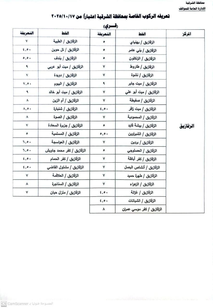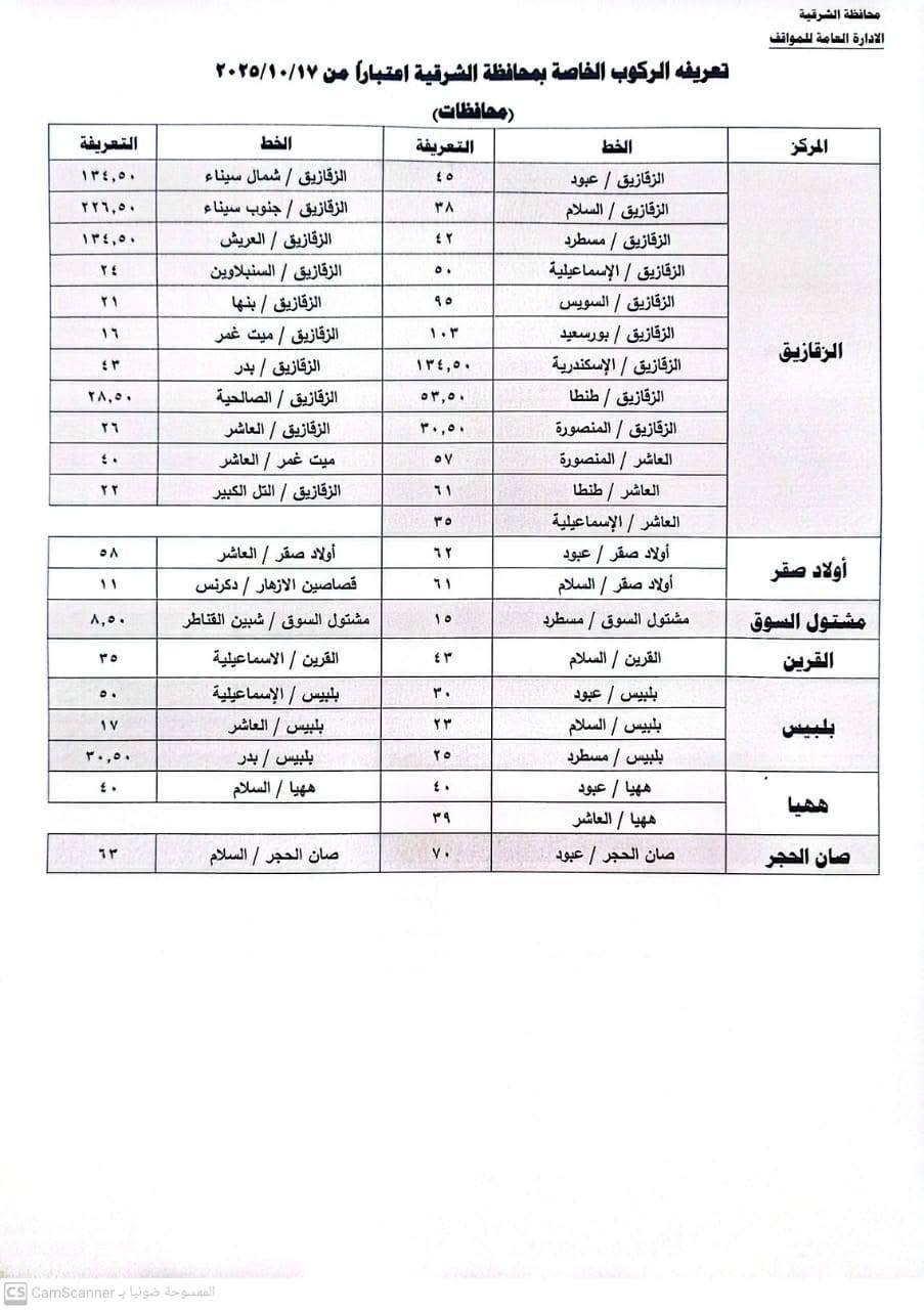 أوضح محافظ الشرقية أن قرار تعديل تعريفة الركوب جاء بما يتماشى مع مسافة كل خط سير ومراعاة للبعد الإجتماعي للمواطنين محذراً من استغلال المواطنين في تحصيل مبالغ أزيد من تعريفة الركوب المقررة ومؤكداً أنه سيتم إتخاذ كافة الإجراءات القانونية حيال غير الملتزمين