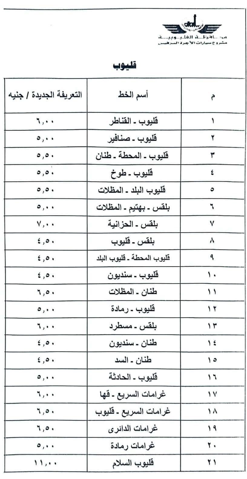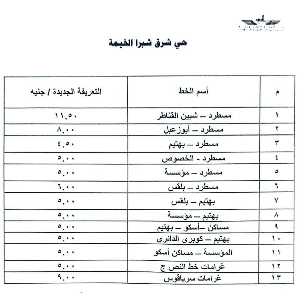 محافظ القليوبية يعتمد تعريفة الركوب الجديدة عقب تحريك أسعار الوقود