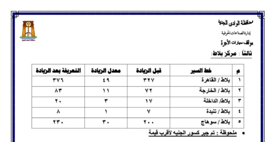 بعد زيادة أسعار الوقود.. تعرف على التعريفة الجديدة بالوادي الجديد
