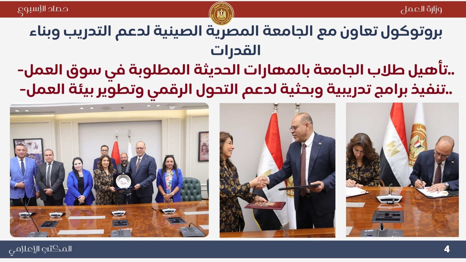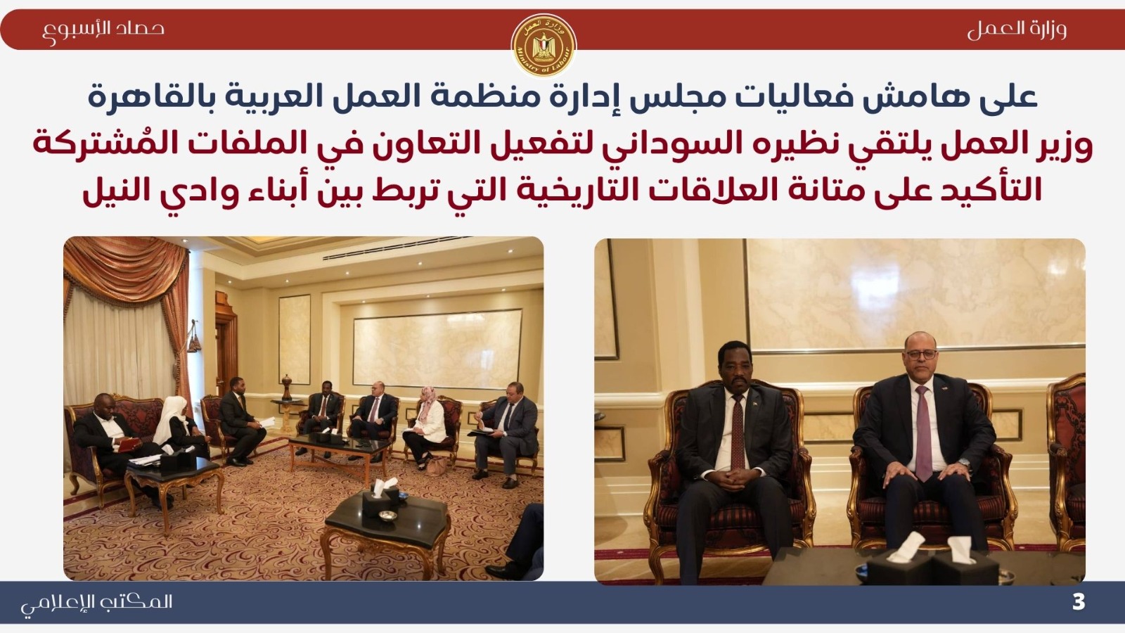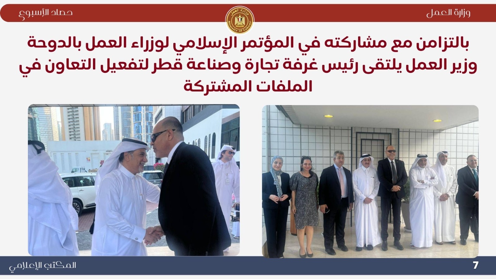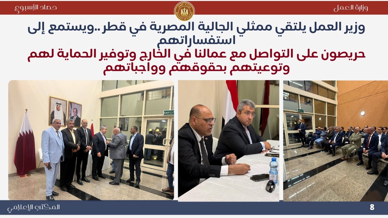 أنشطة مكثفة محليًا وعربيًا ودوليًا.. حصاد وزارة العمل خلال أسبوع