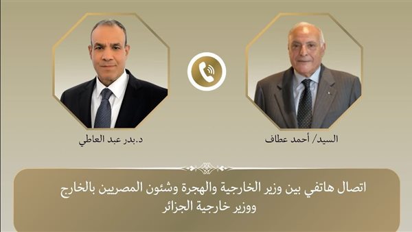 جرى اتصال هاتفي بين د. بدر عبد العاطي وزير الخارجية والهجرة وشئون المصريين بالخارج، وأحمد عطاف وزير الشؤون الخارجية والجالية الوطنية بالخارج بالجمهورية الجزائرية الديمقراطية الشعبية الشقيقة، يوم السبت ١٨ أكتوبر، حيث تناول الاتصال سبل تعزيز التعاون الثنائي وتبادل الرؤى حول القضايا الإقليمية ذات الاهتمام المشترك.
