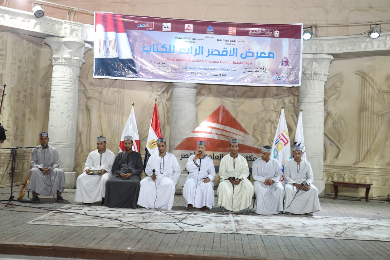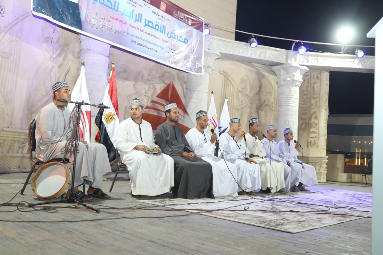 وقدمت الفرقة باقة من الأناشيد والابتهالات الروحية التي أضفت أجواءً من الصفاء والسكينة، منها: «يا حبيب سلام عليك»، «رسول الله زادي»، «وهذه ليلة مباركة»، وغيرها من الإنشادات التي تفاعل معها الجمهور بالتصفيق والإنشاد، في ختام يوم احتفى بالكلمة والروح والفن معًا، في أجواء من البهجة والإبداع داخل معرض الأقصر الرابع للكتاب.