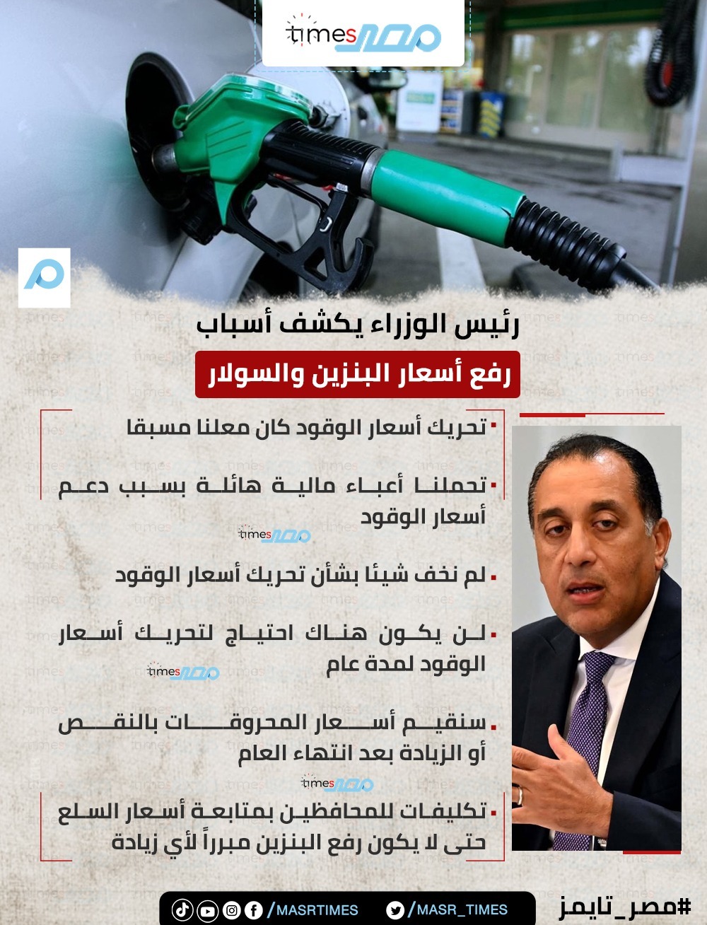 رئيس الوزراء يكشف أسباب رفع أسعار البنزين والسولار (إنفو جراف)